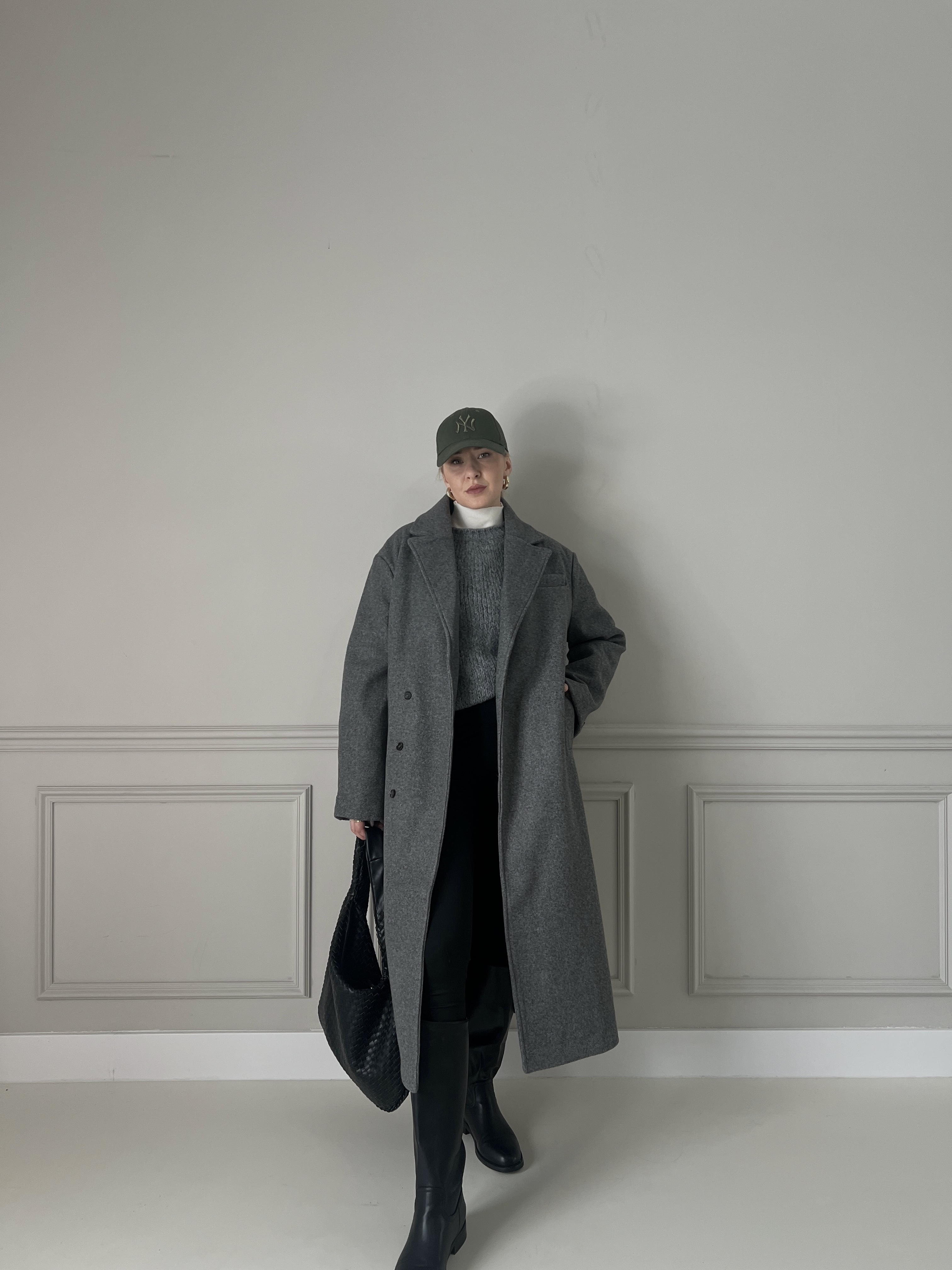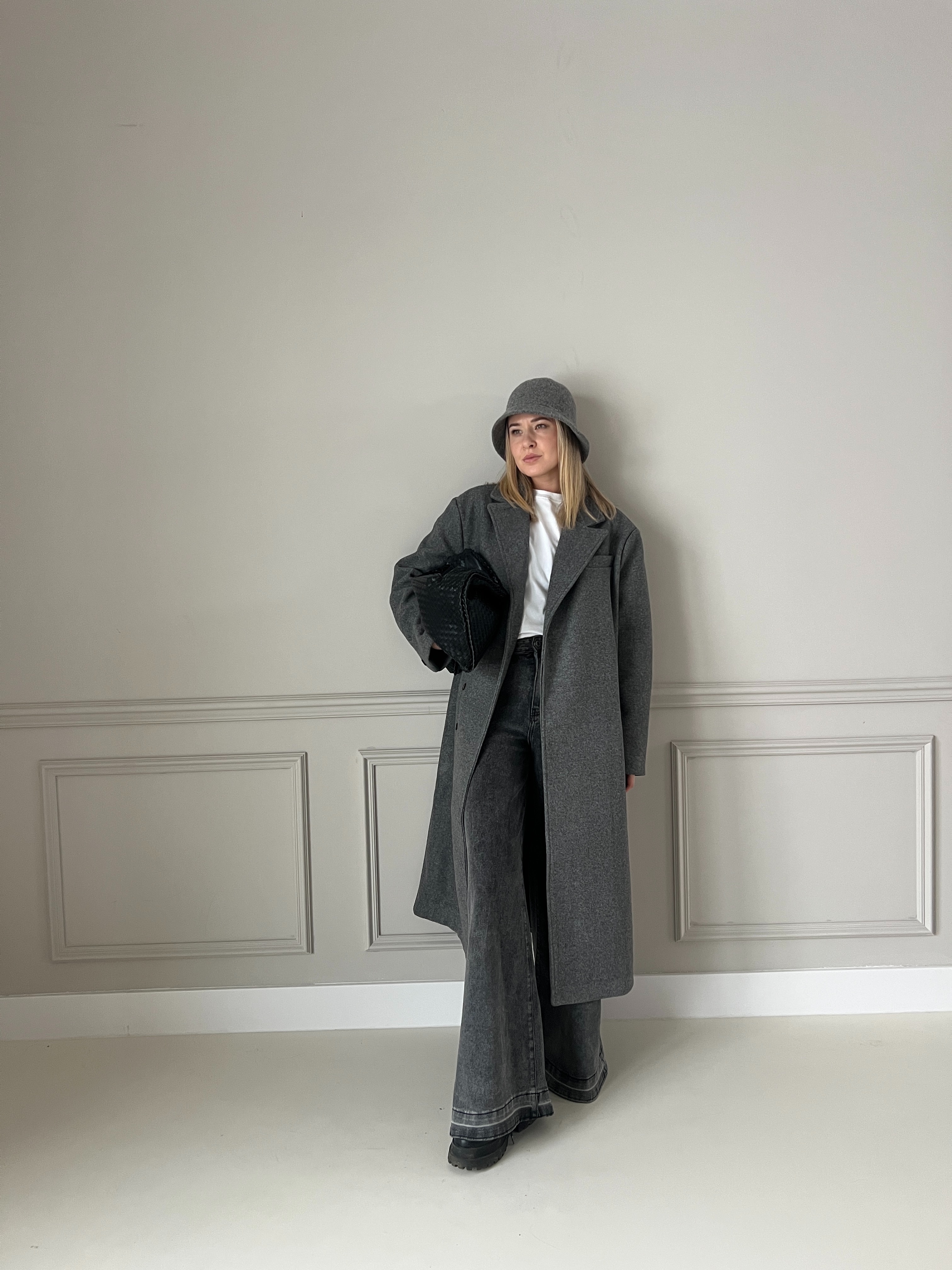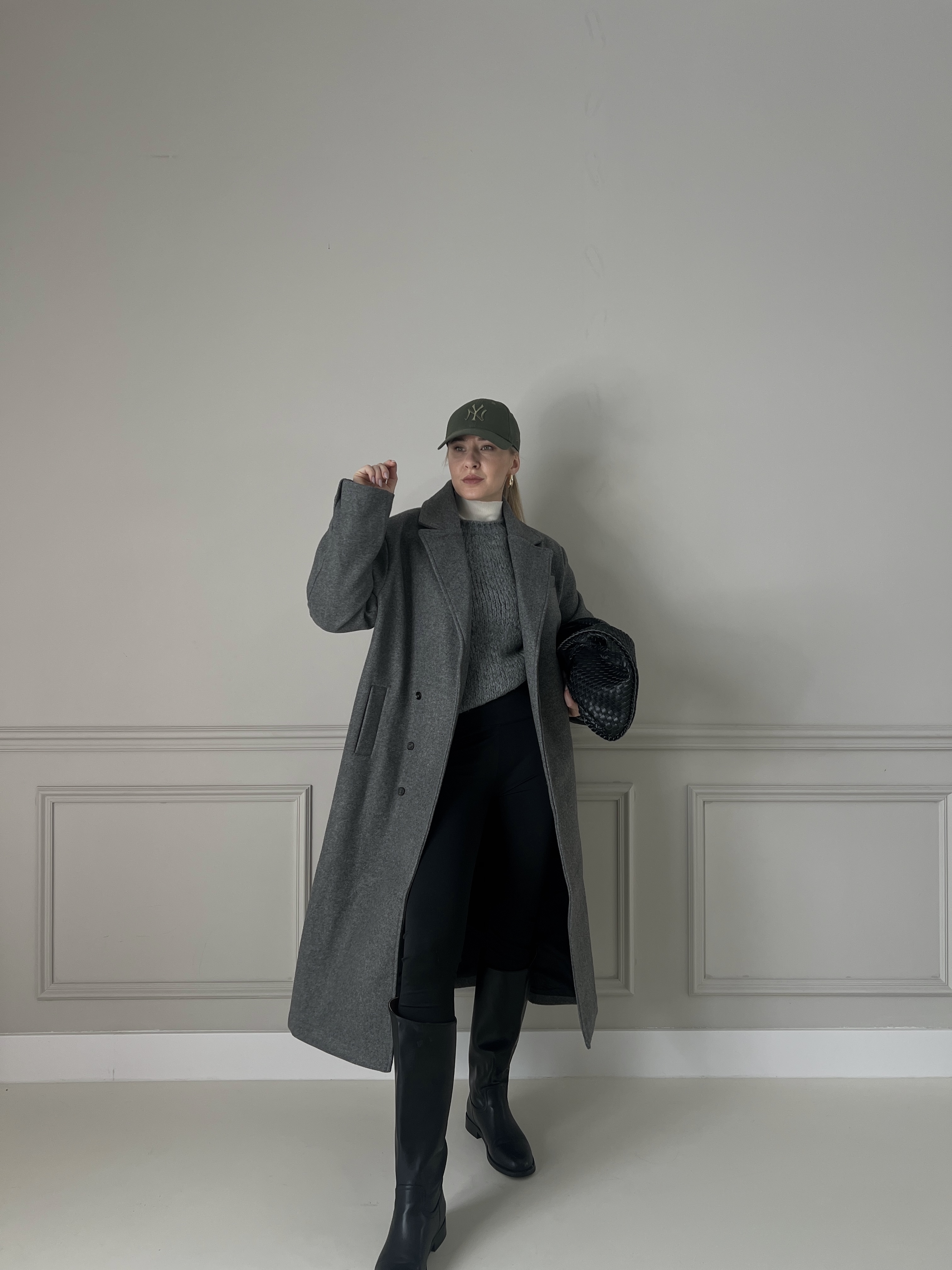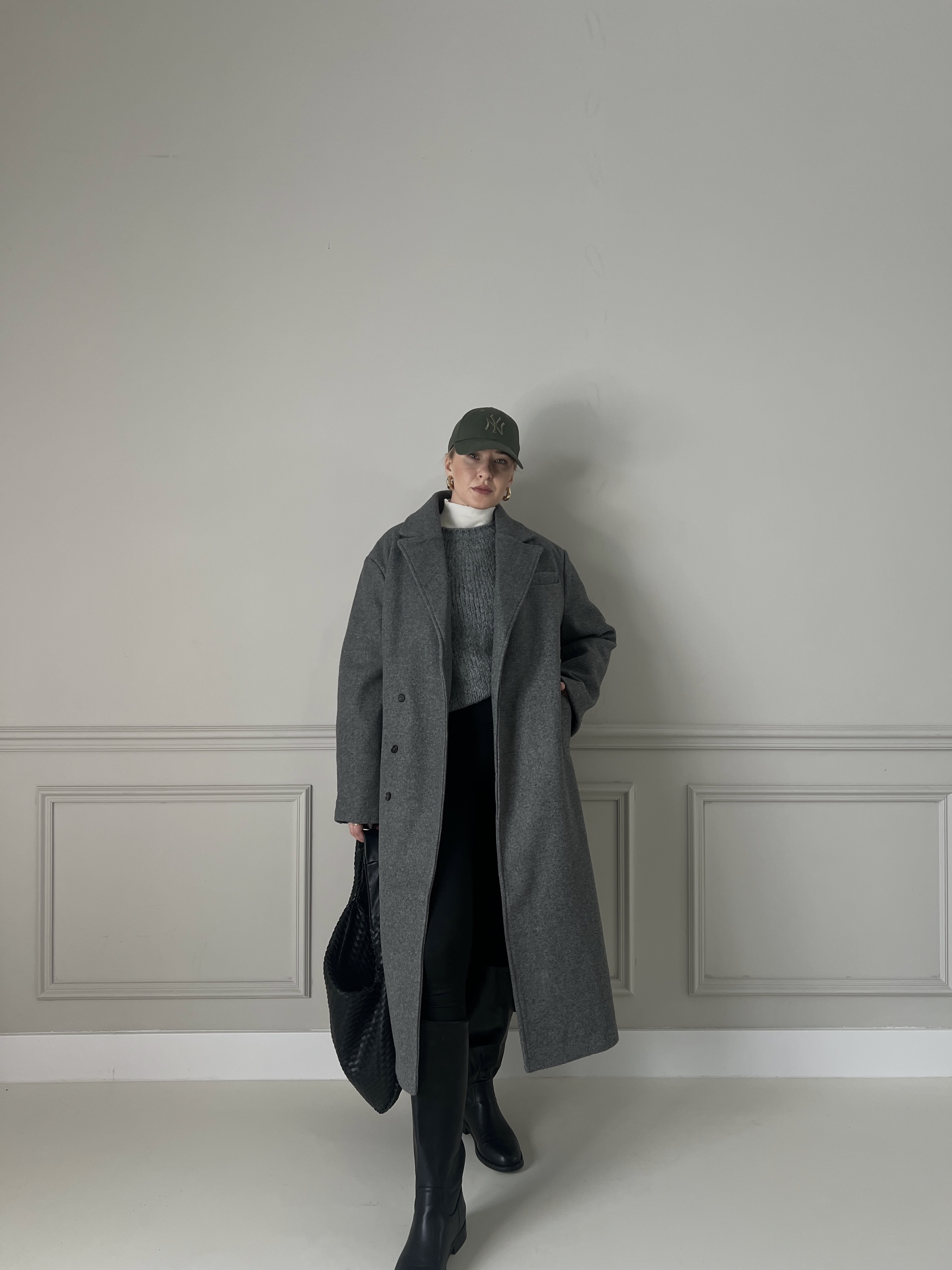 Klasický, elegantný kabát v sivej farbe so štýlovým golierom a rovným strihom. Je vyrobený z príjemného, hrejivého materiálu, ktorý zabezpečí komfort počas celej zimy. Nadčasový dizajn vhodný do práce, do mesta aj na formálnejšie príležitosti.