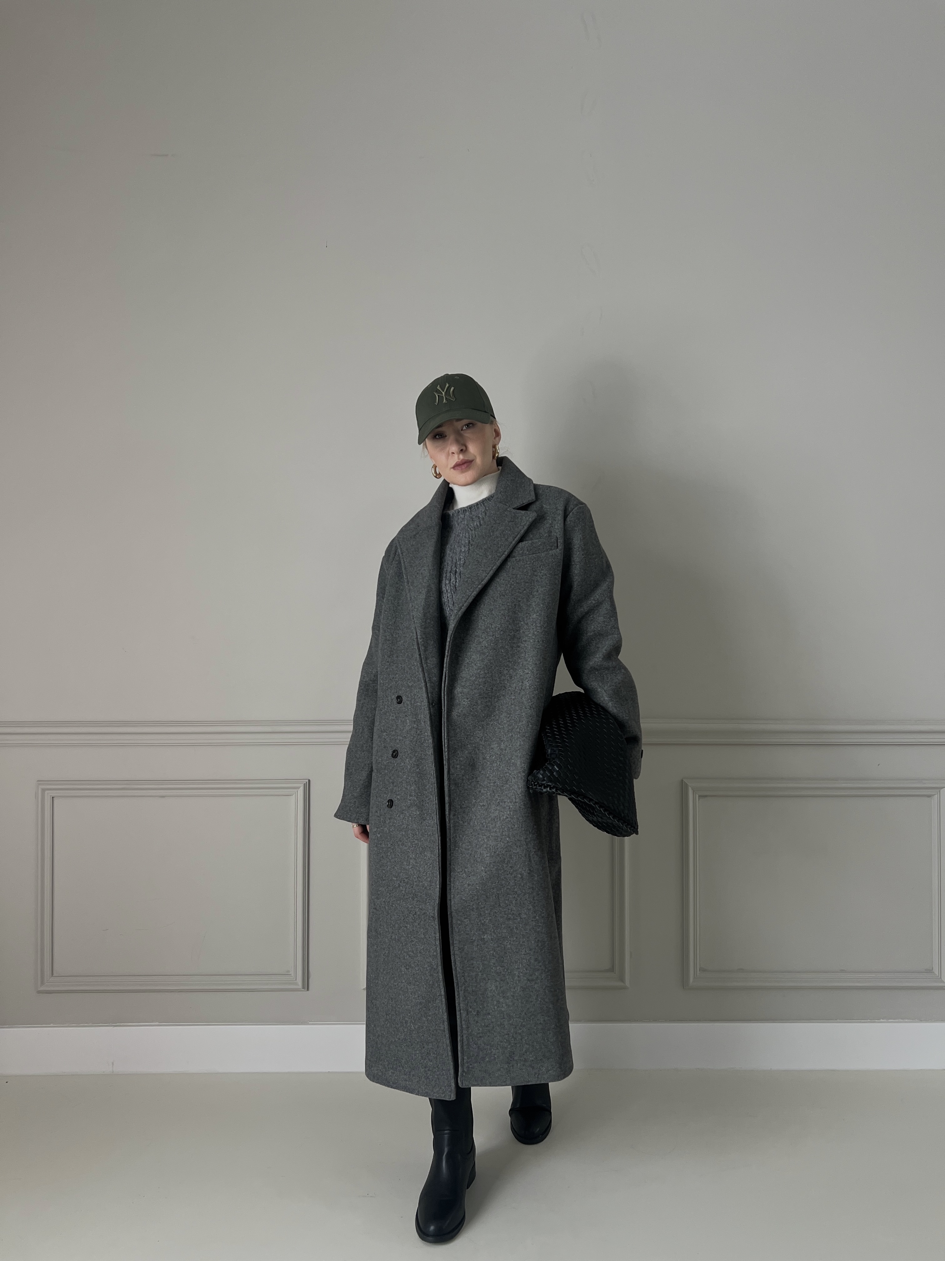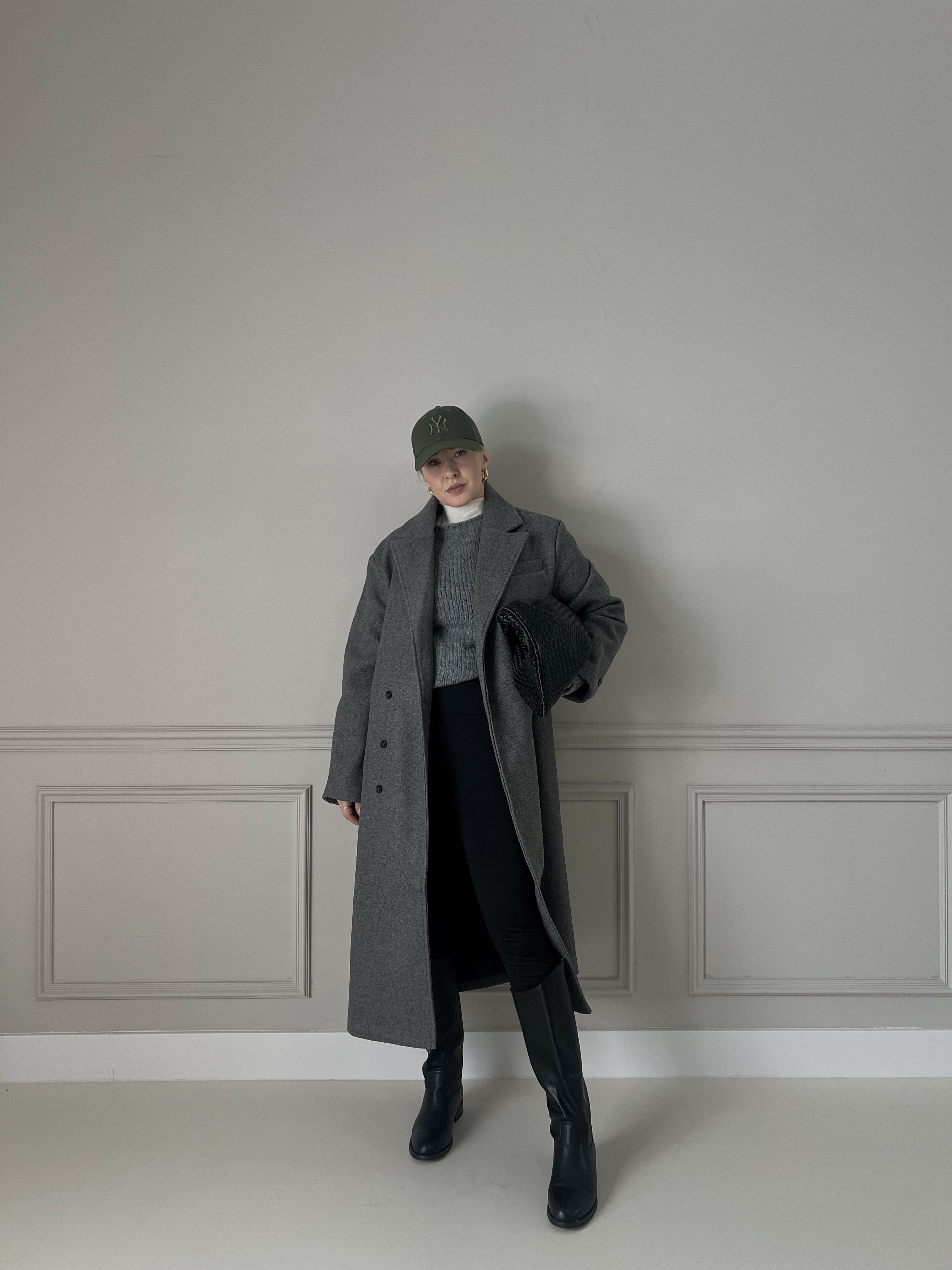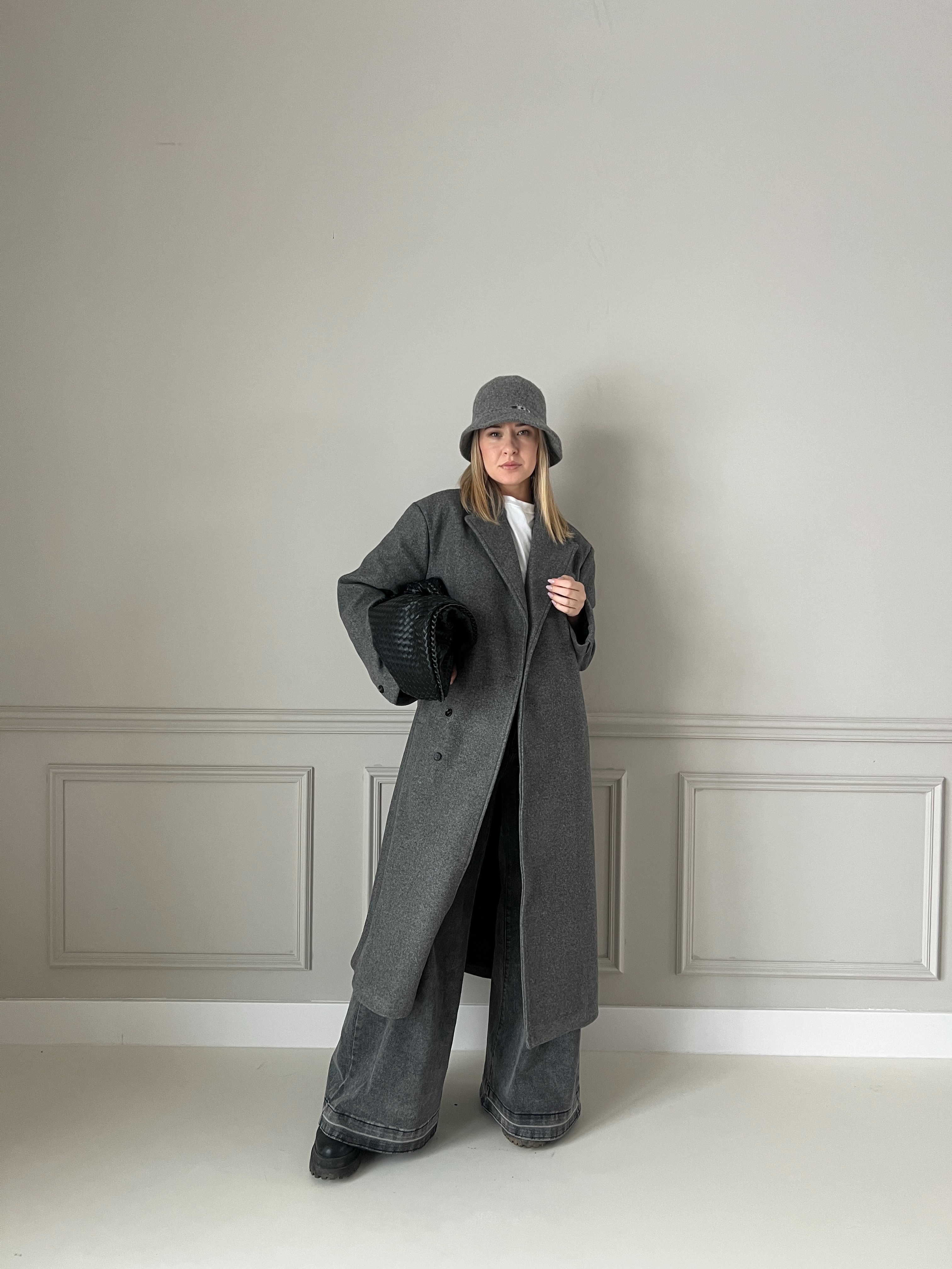 Klasický, elegantný kabát v sivej farbe so štýlovým golierom a rovným strihom. Je vyrobený z príjemného, hrejivého materiálu, ktorý zabezpečí komfort počas celej zimy. Nadčasový dizajn vhodný do práce, do mesta aj na formálnejšie príležitosti.
