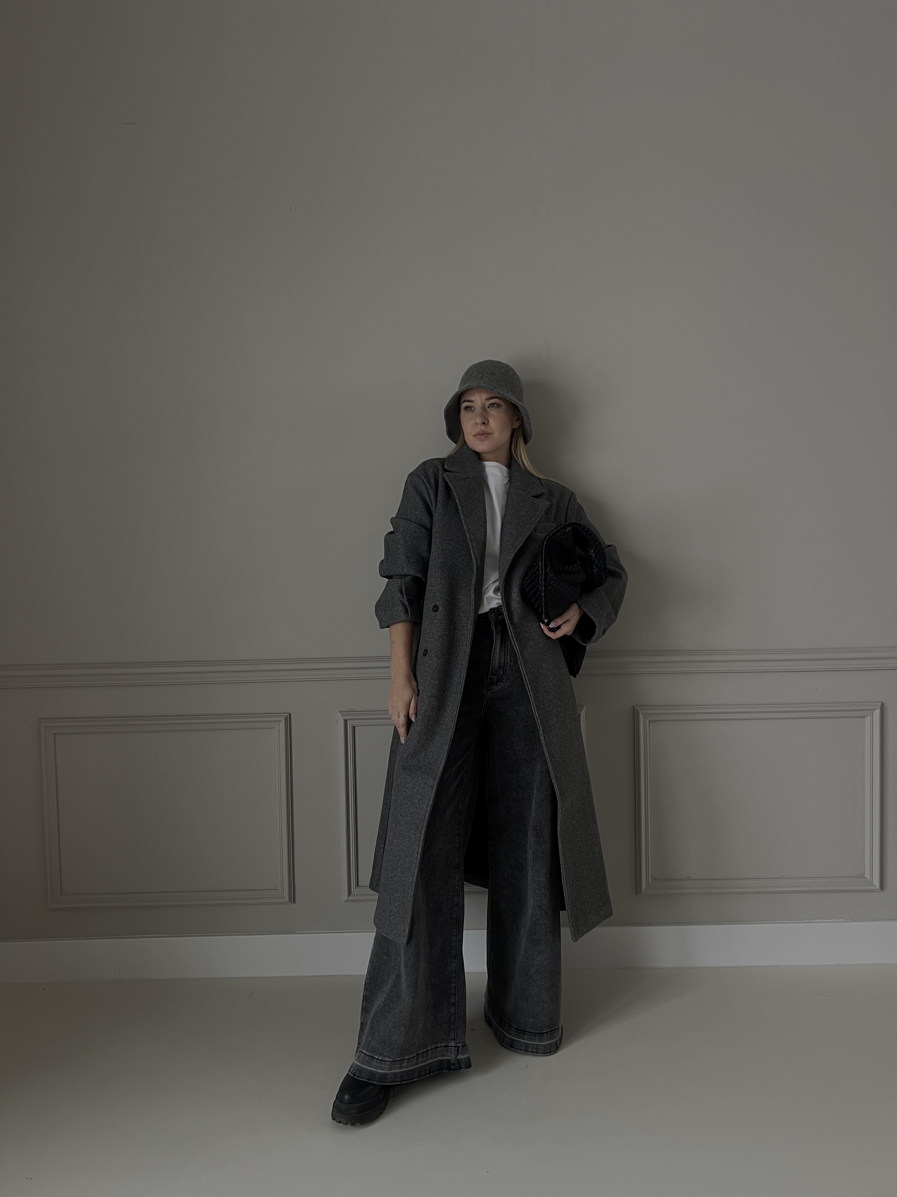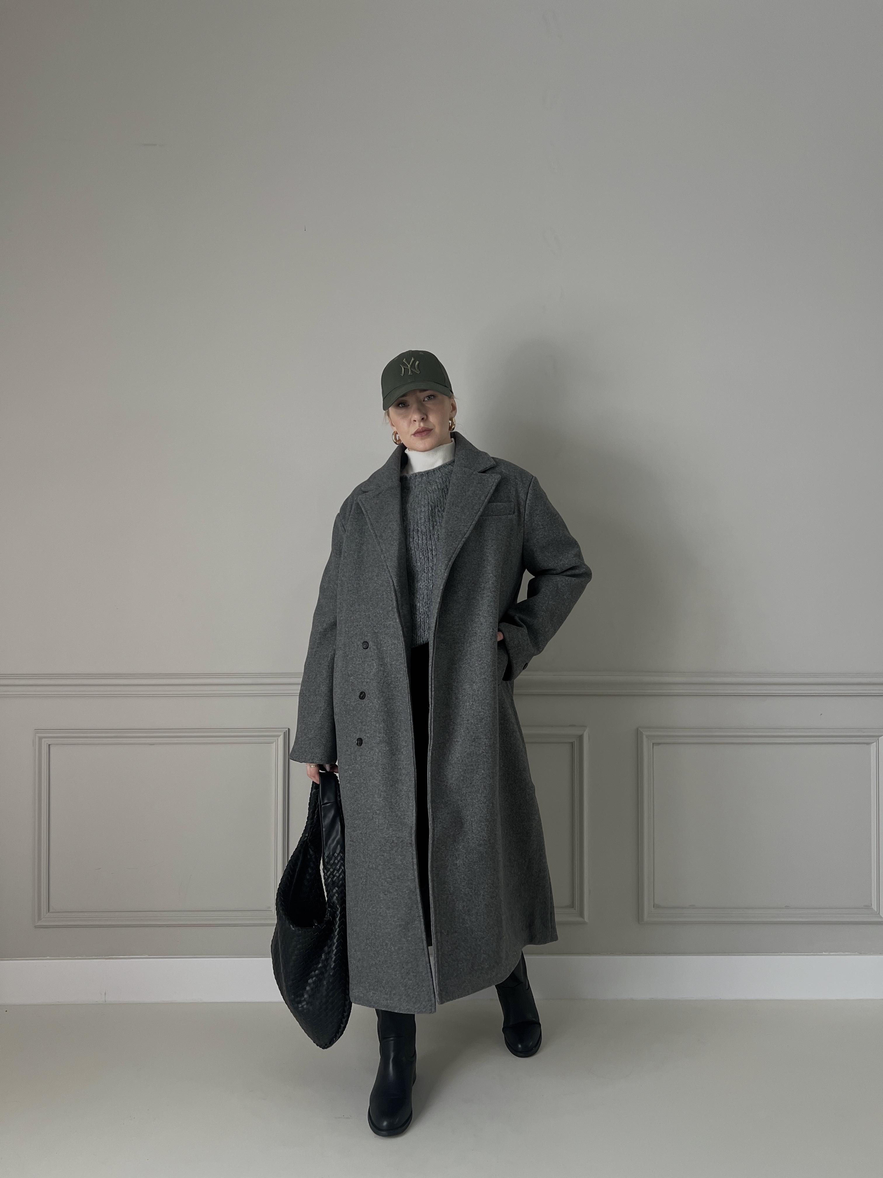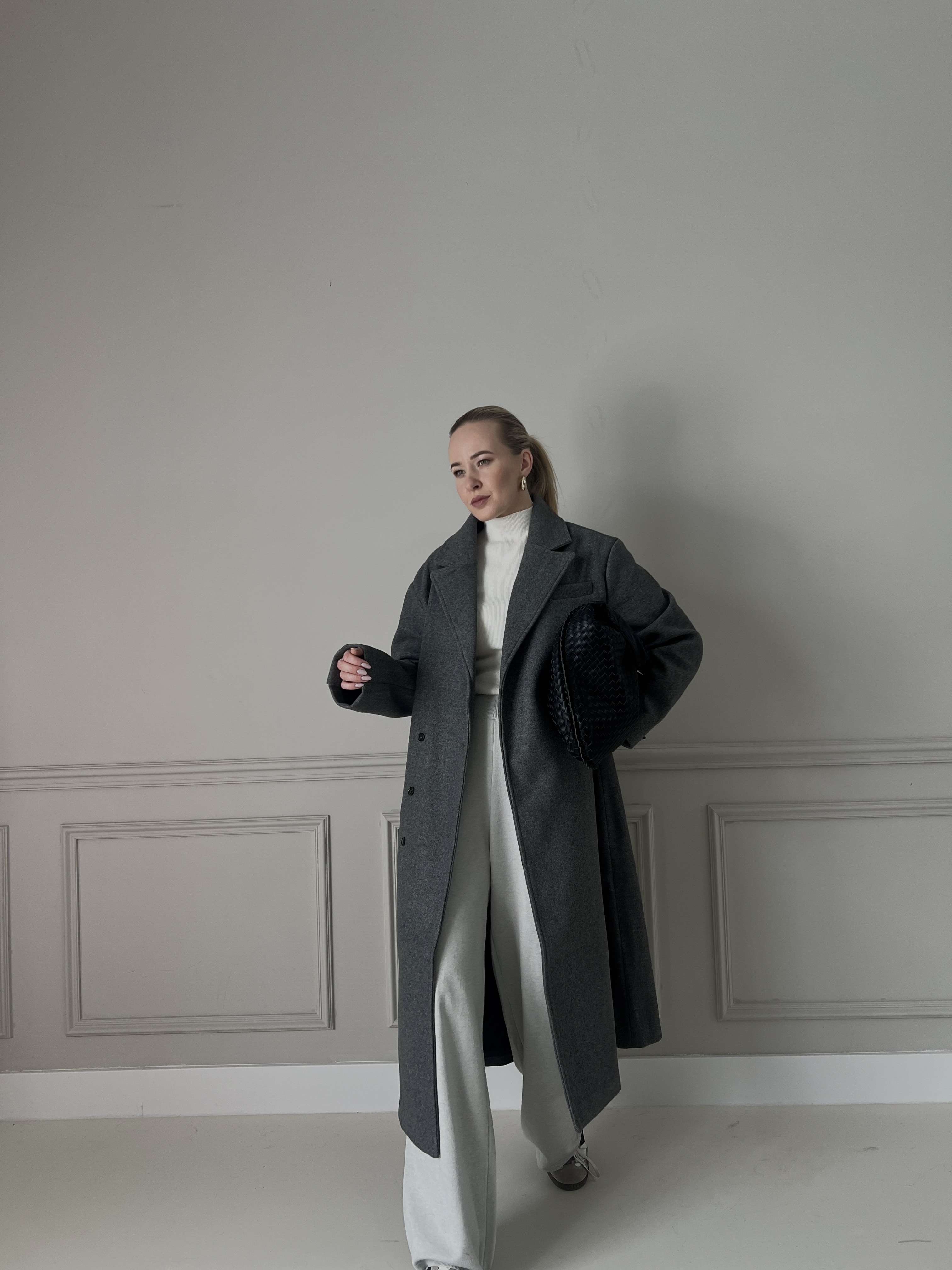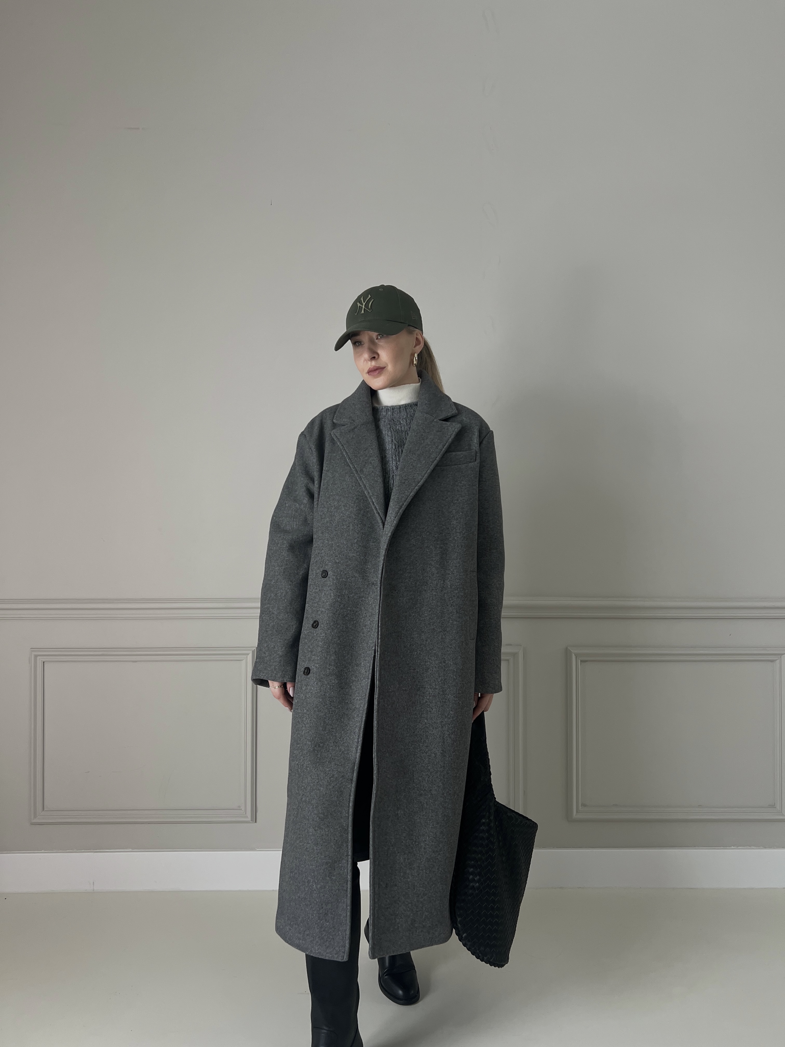 Klasický, elegantný kabát v sivej farbe so štýlovým golierom a rovným strihom. Je vyrobený z príjemného, hrejivého materiálu, ktorý zabezpečí komfort počas celej zimy. Nadčasový dizajn vhodný do práce, do mesta aj na formálnejšie príležitosti.