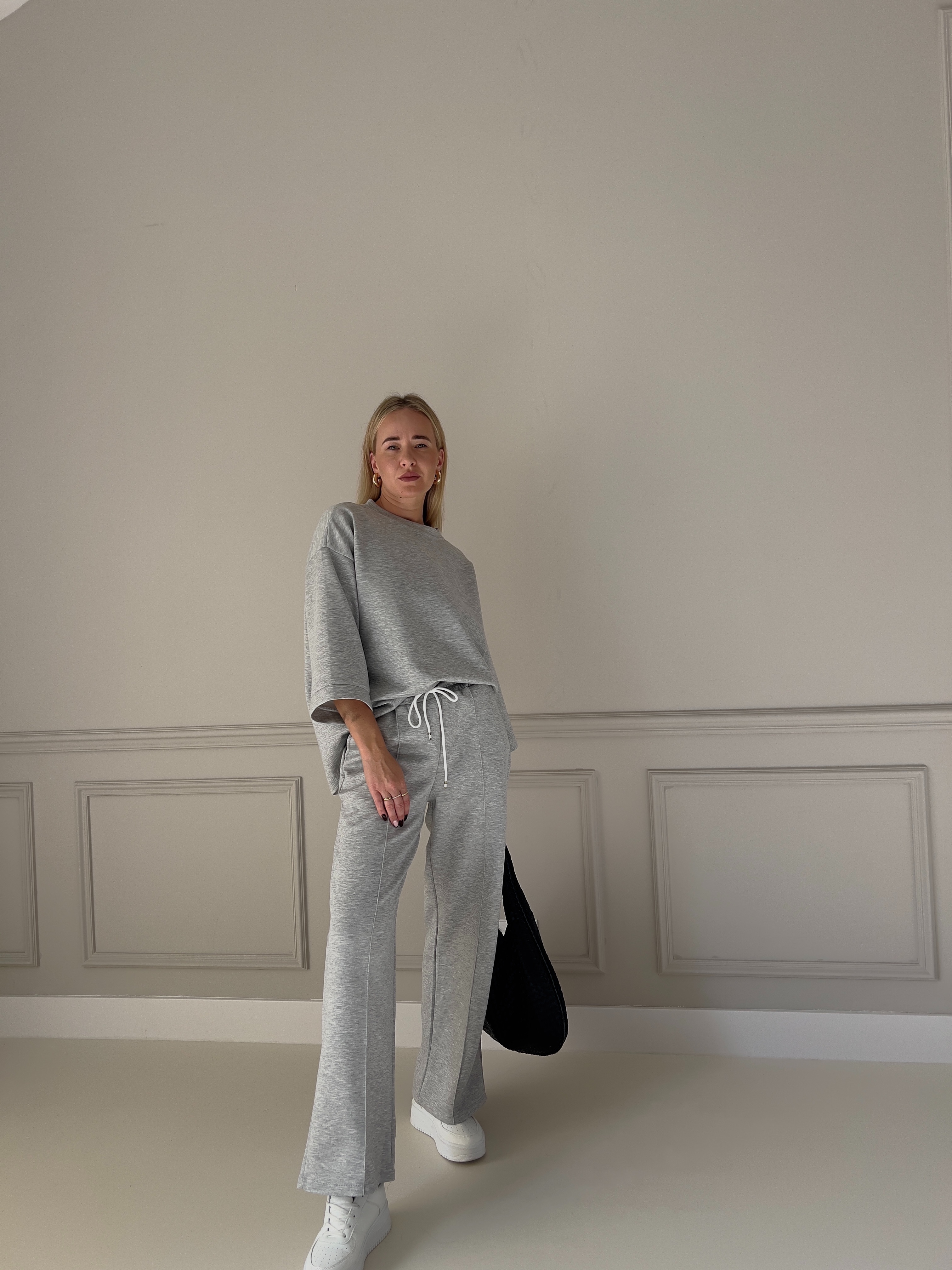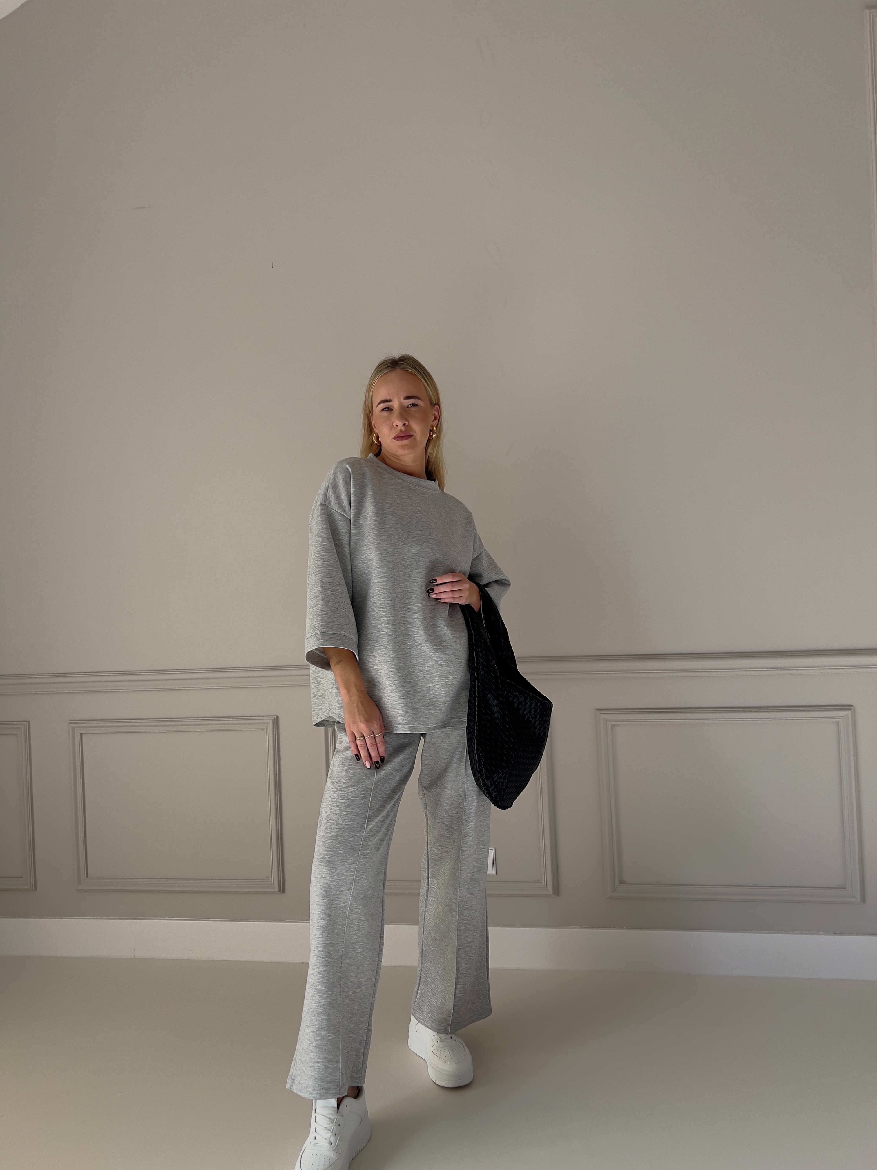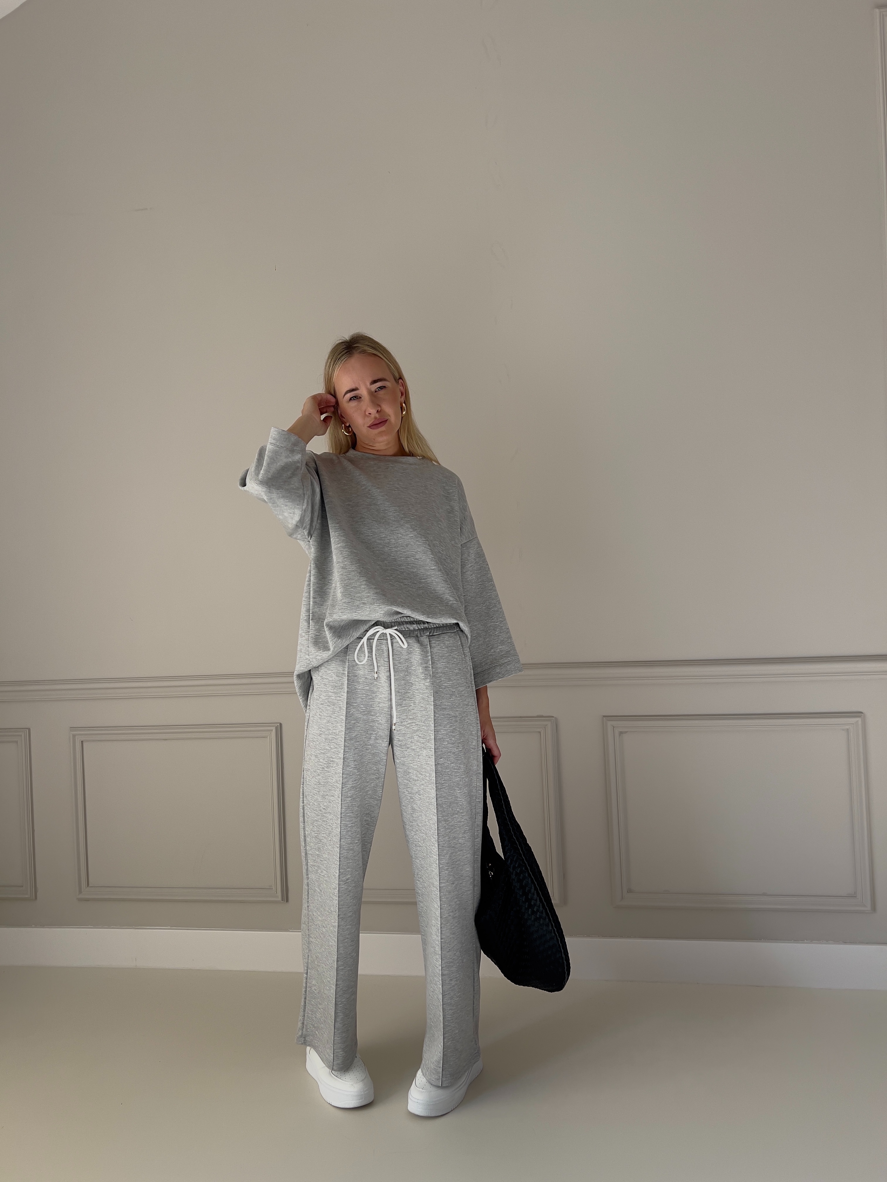 Pohodlná tepláková súprava v ležérnom strihu vo veľmi príjemnom a mäkkom materiály. Mikina má rovný, jemne oversize strih s okrúhlym výstrihom. Tepláky majú rovný strih s bočnými vreckami. V páse je gumička.