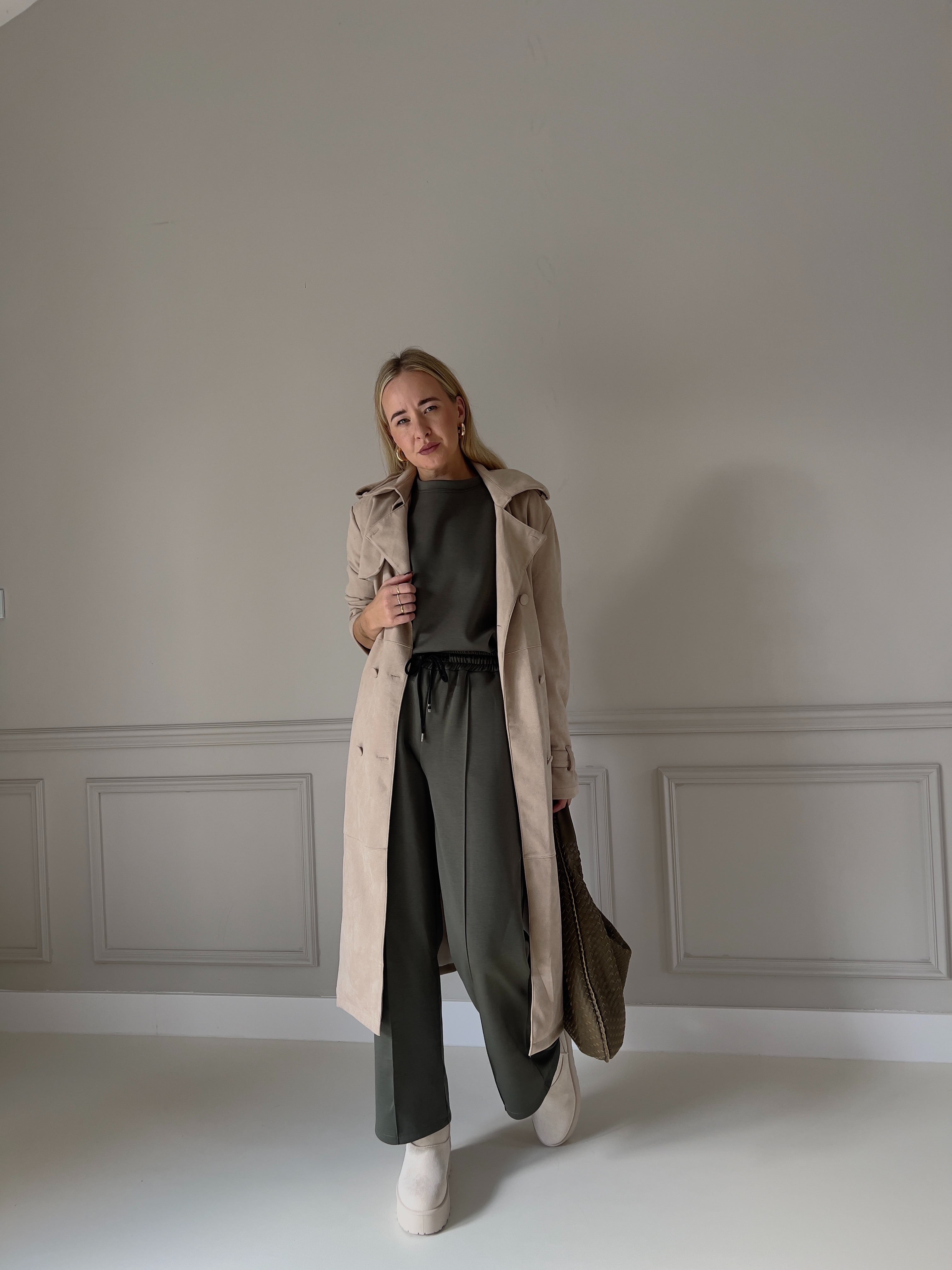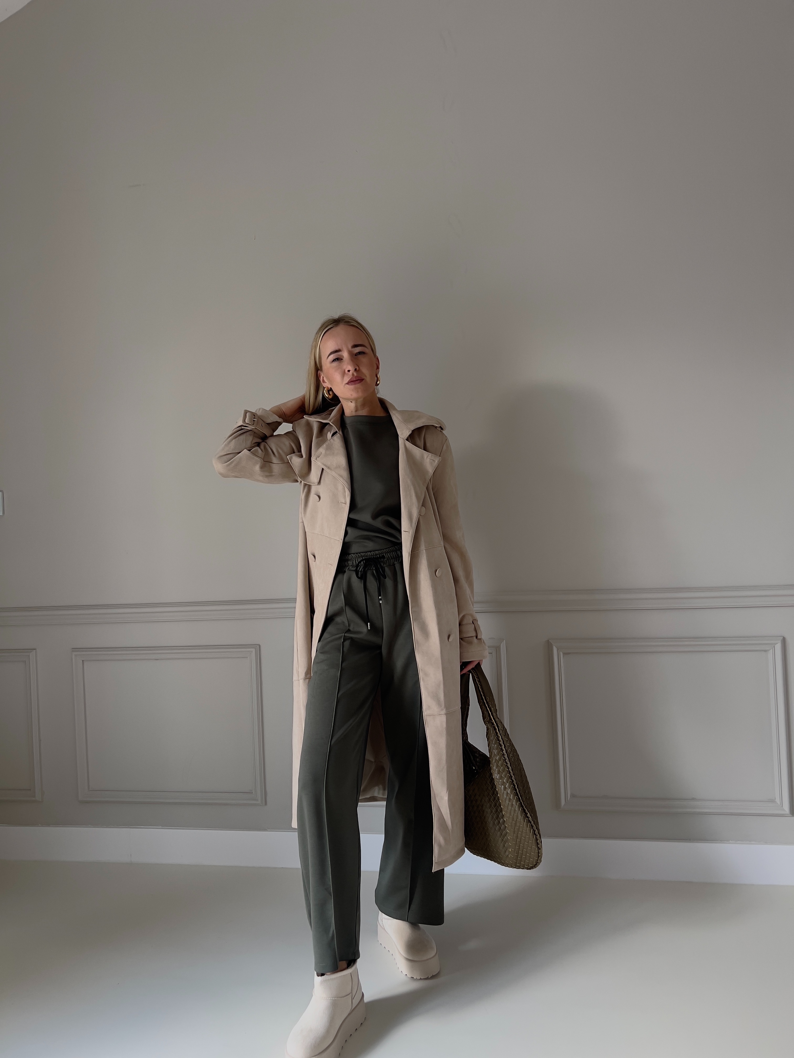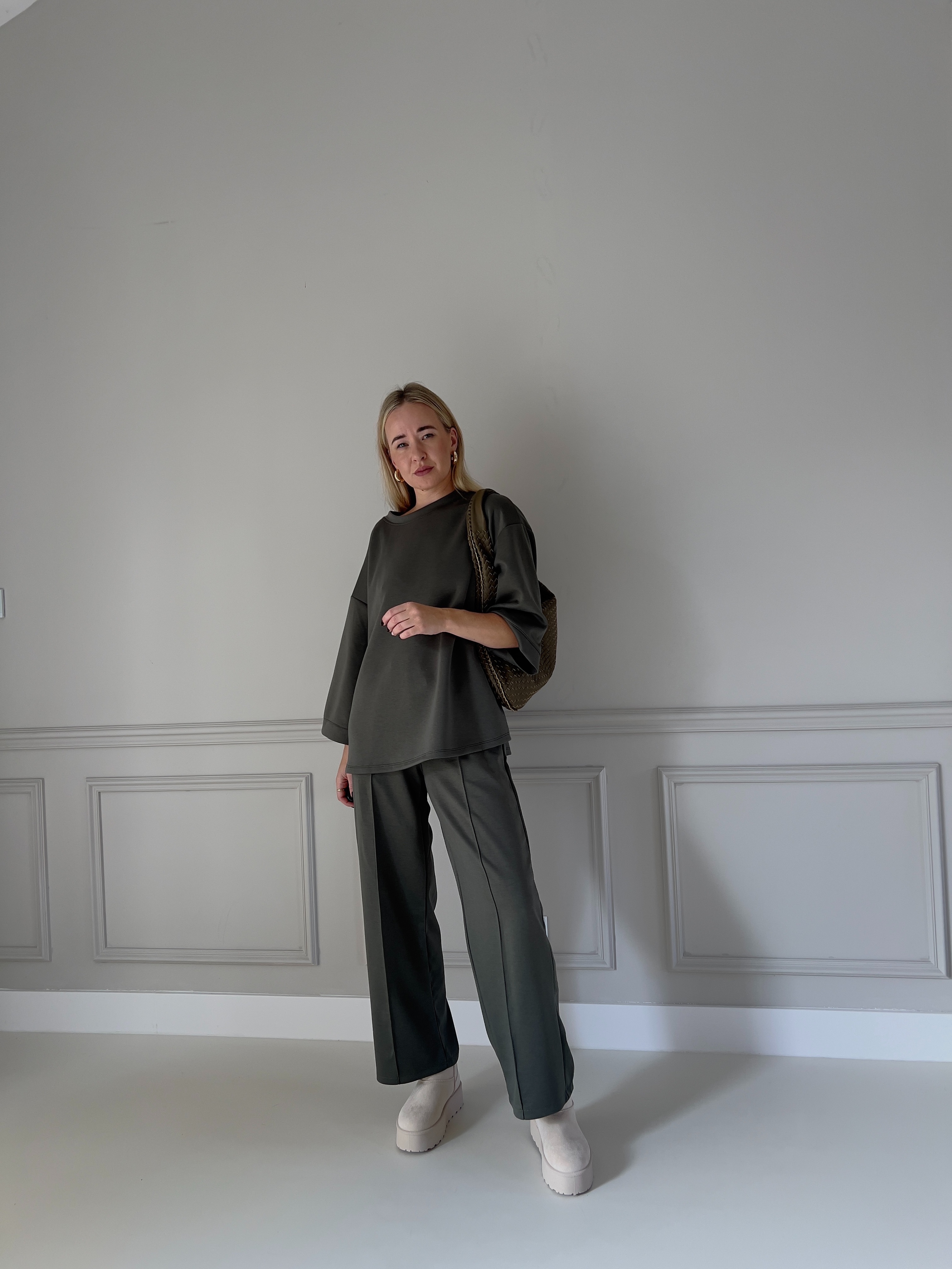 Pohodlná tepláková súprava v ležérnom strihu vo veľmi príjemnom a mäkkom materiály. Mikina má rovný, jemne oversize strih s okrúhlym výstrihom. Tepláky majú rovný strih s bočnými vreckami. V páse je gumička.