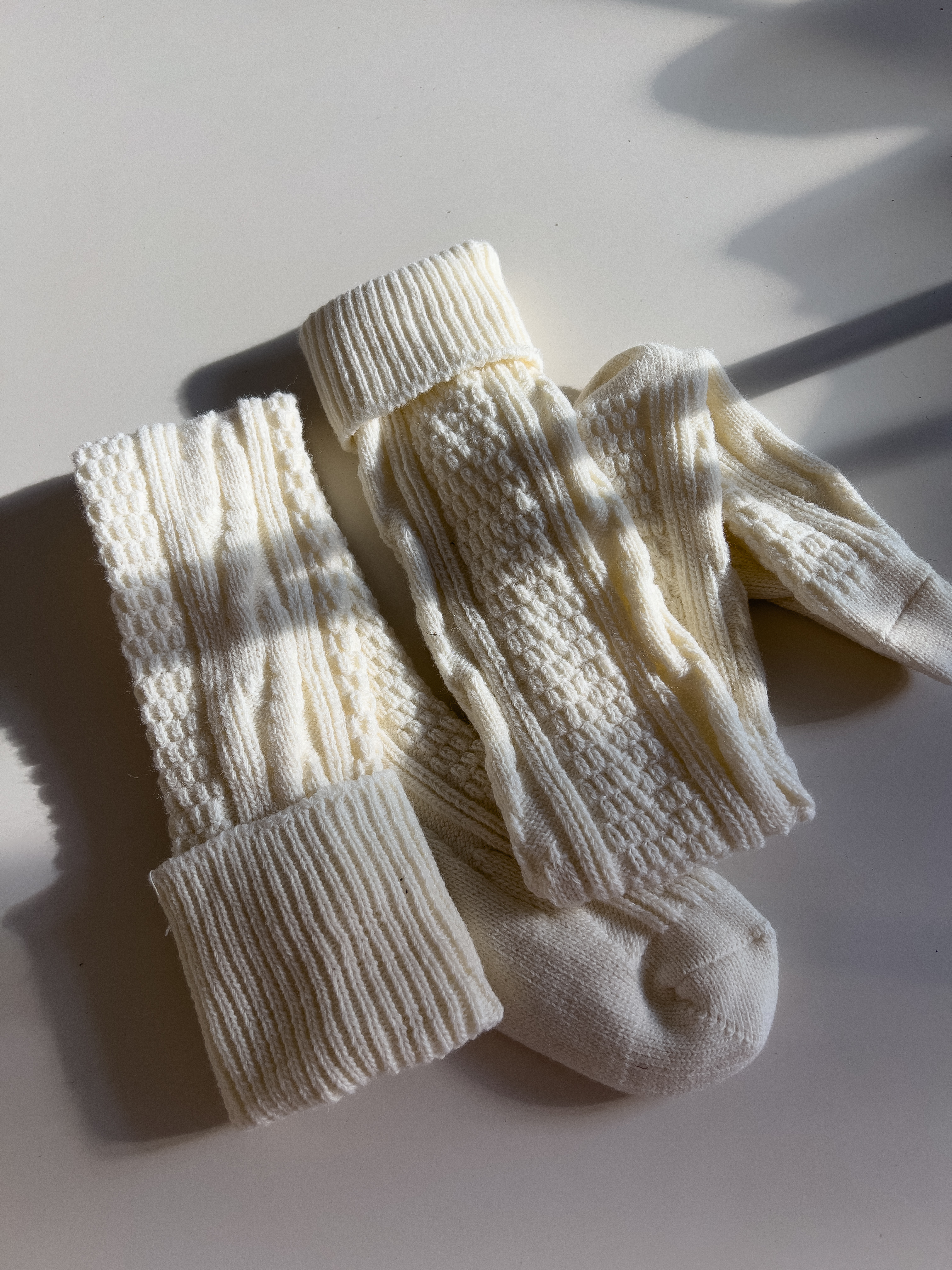 Elegantné a pružné nadkolienky, ktoré krásne predĺžia nohy a dodajú outfitu ženský vzhľad. Vyrobené z jemného, priedušného materiálu, ktorý sa prispôsobí postave a dobre drží na mieste. Ideálne na chladnejšie dni aj ako módny doplnok k sukni či šatám.