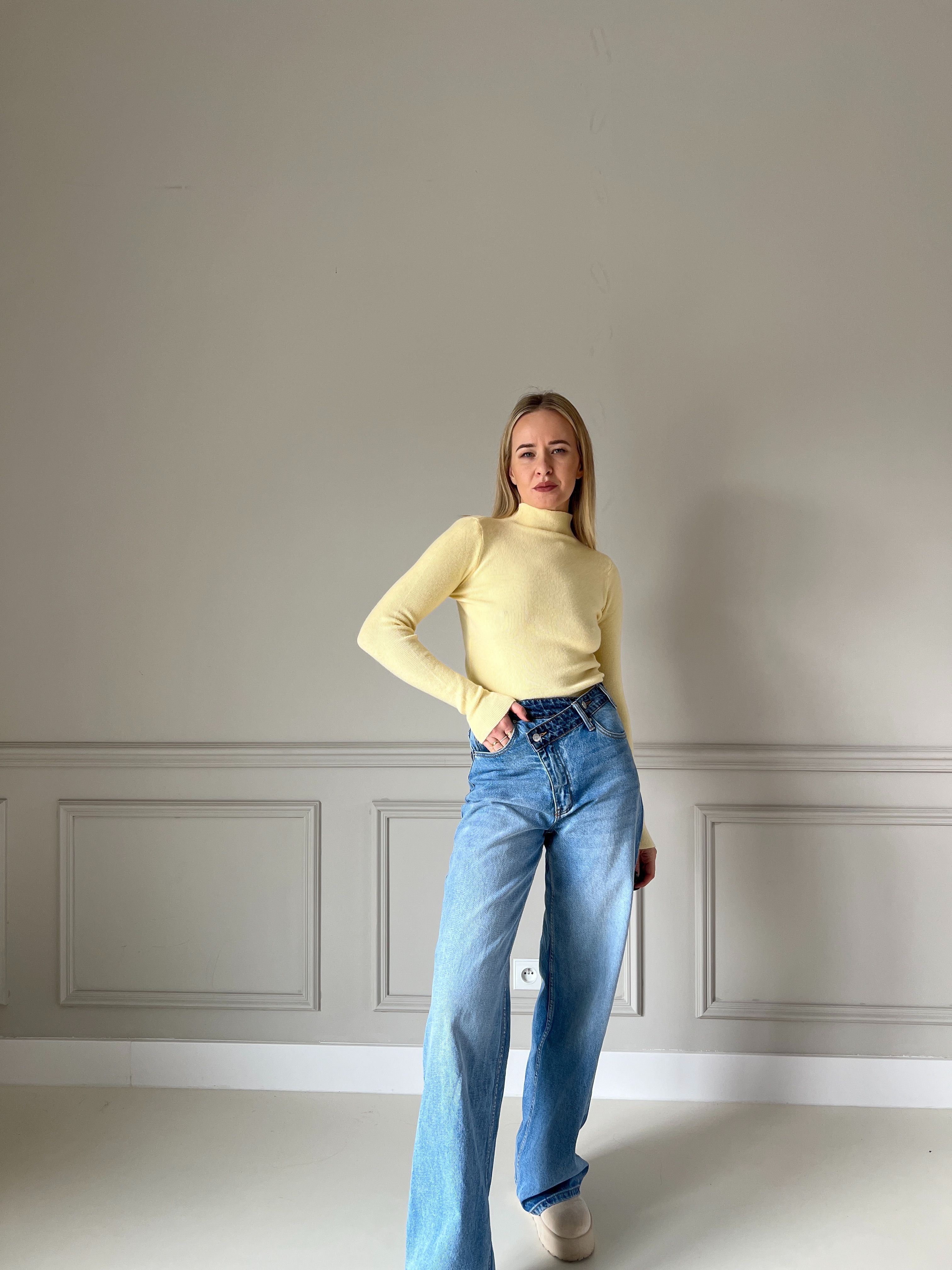 Jednoduchý, priliehavý rolák z jemnej pleteniny v žltej farbe. Príjemný na vrstvenie aj samostatne. Skvele doplní každý jesenný či zimný outfit.