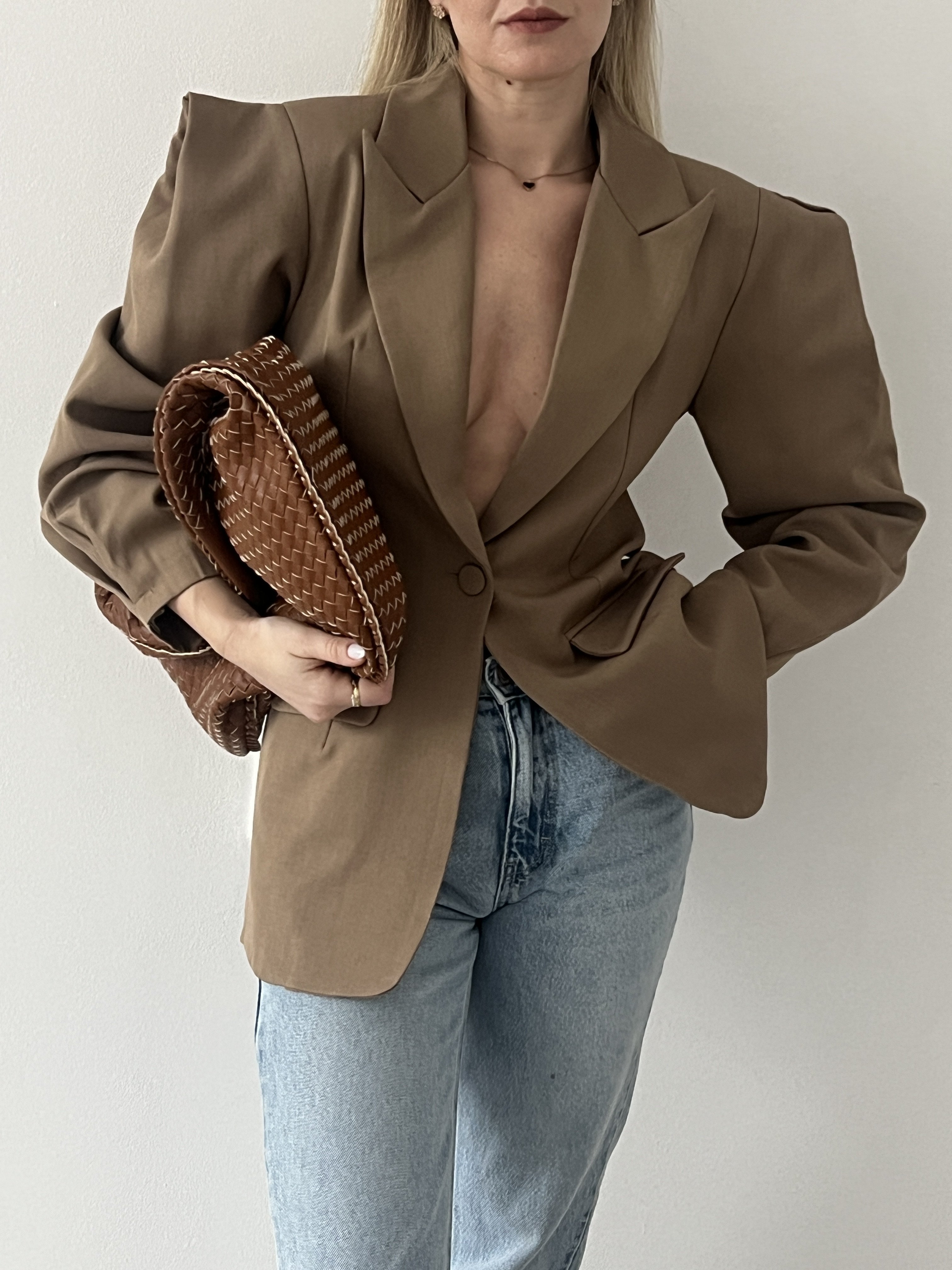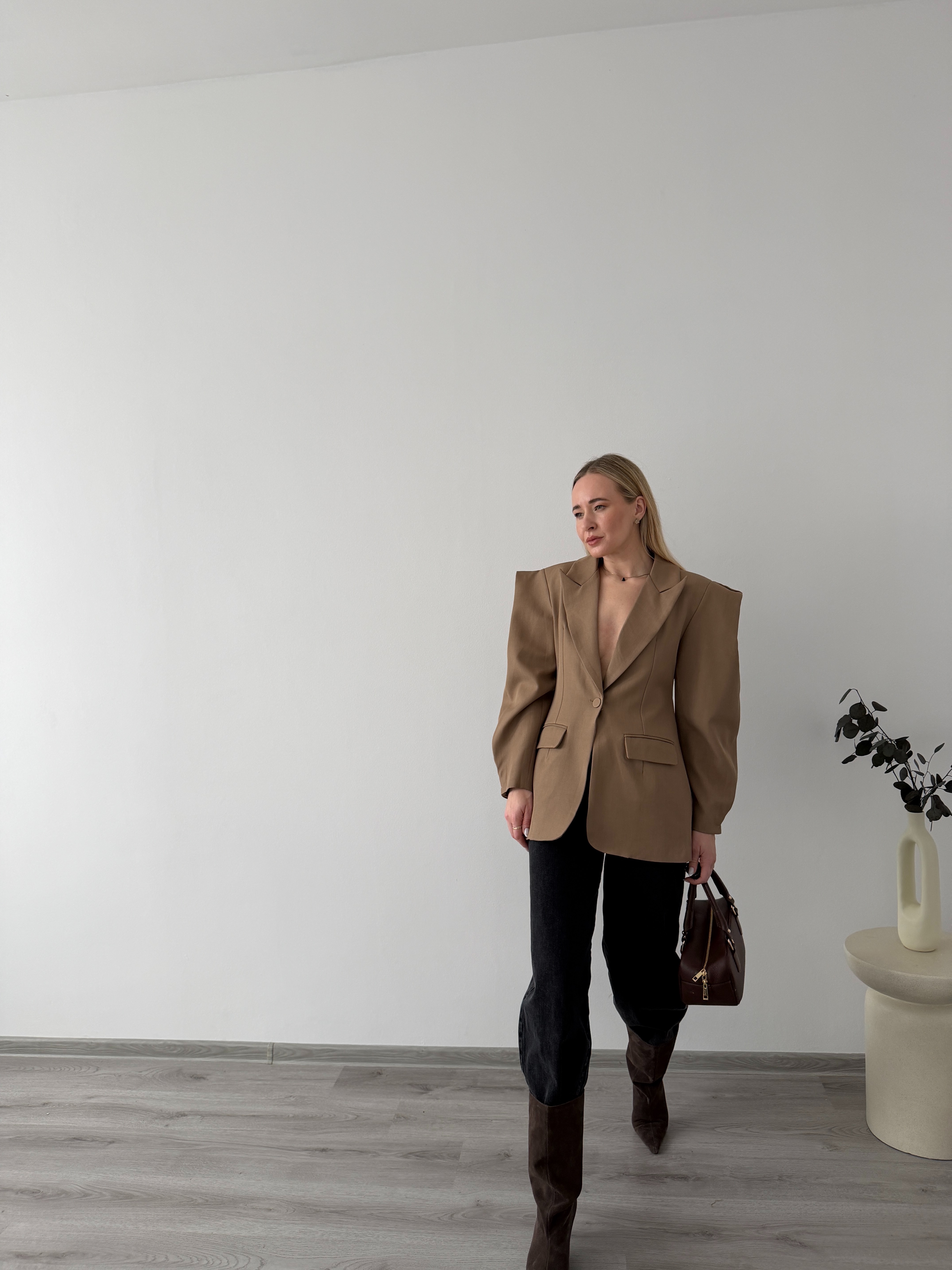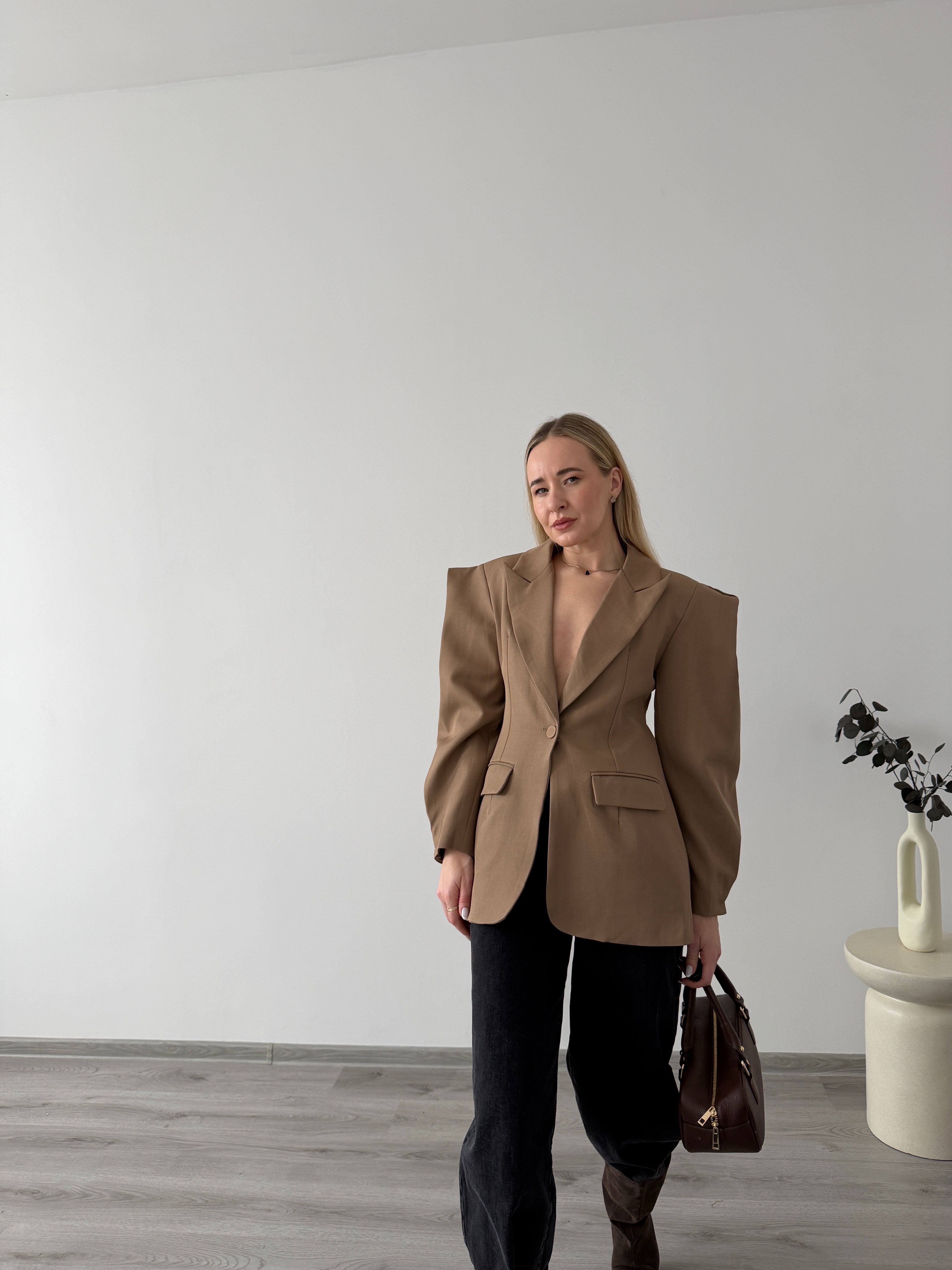 Elegantné sako s jemne naberanými rukávmi. Dodá outfitu štruktúru a štýl, vhodné do práce aj na formálnejšie príležitosti.