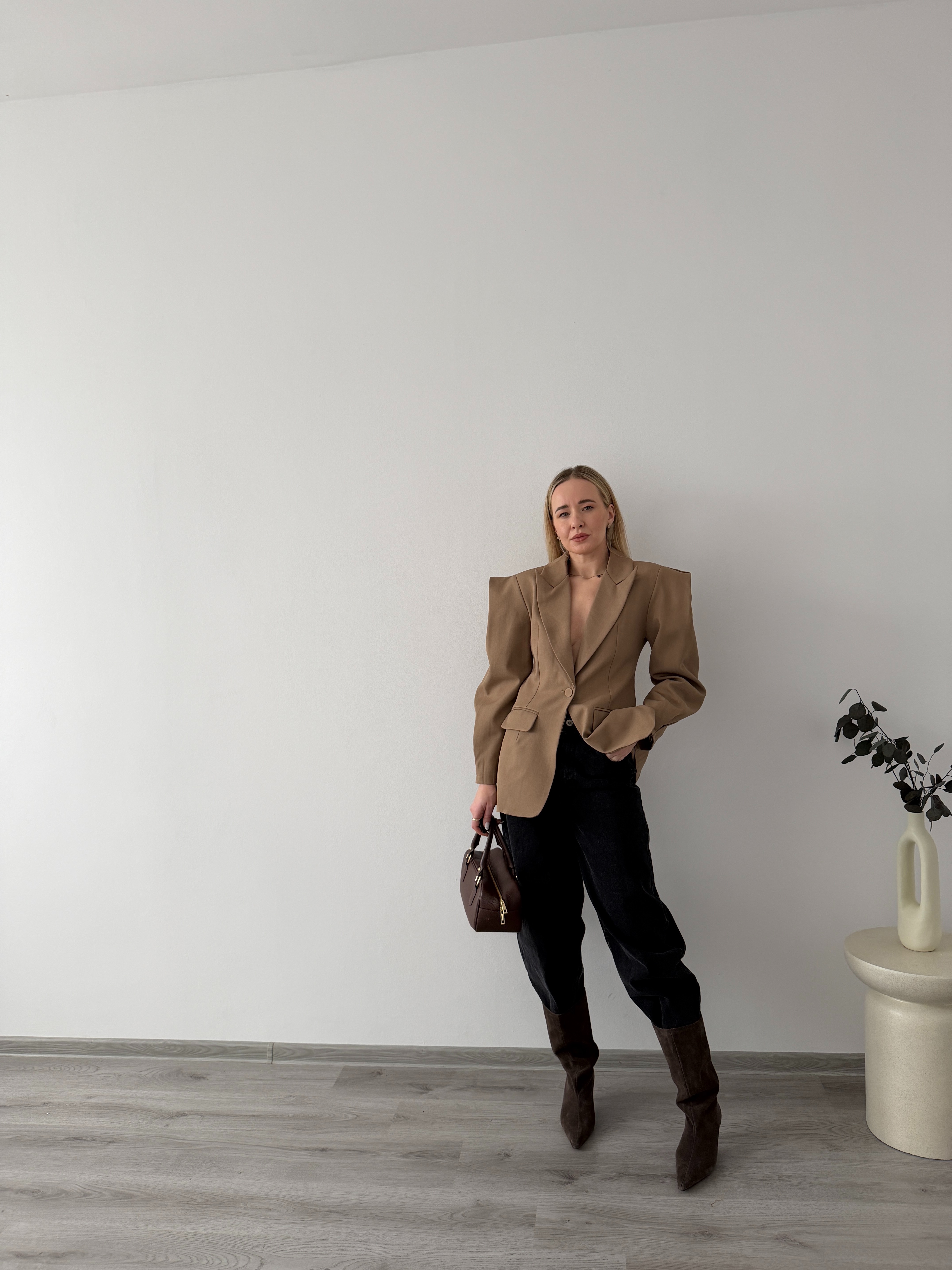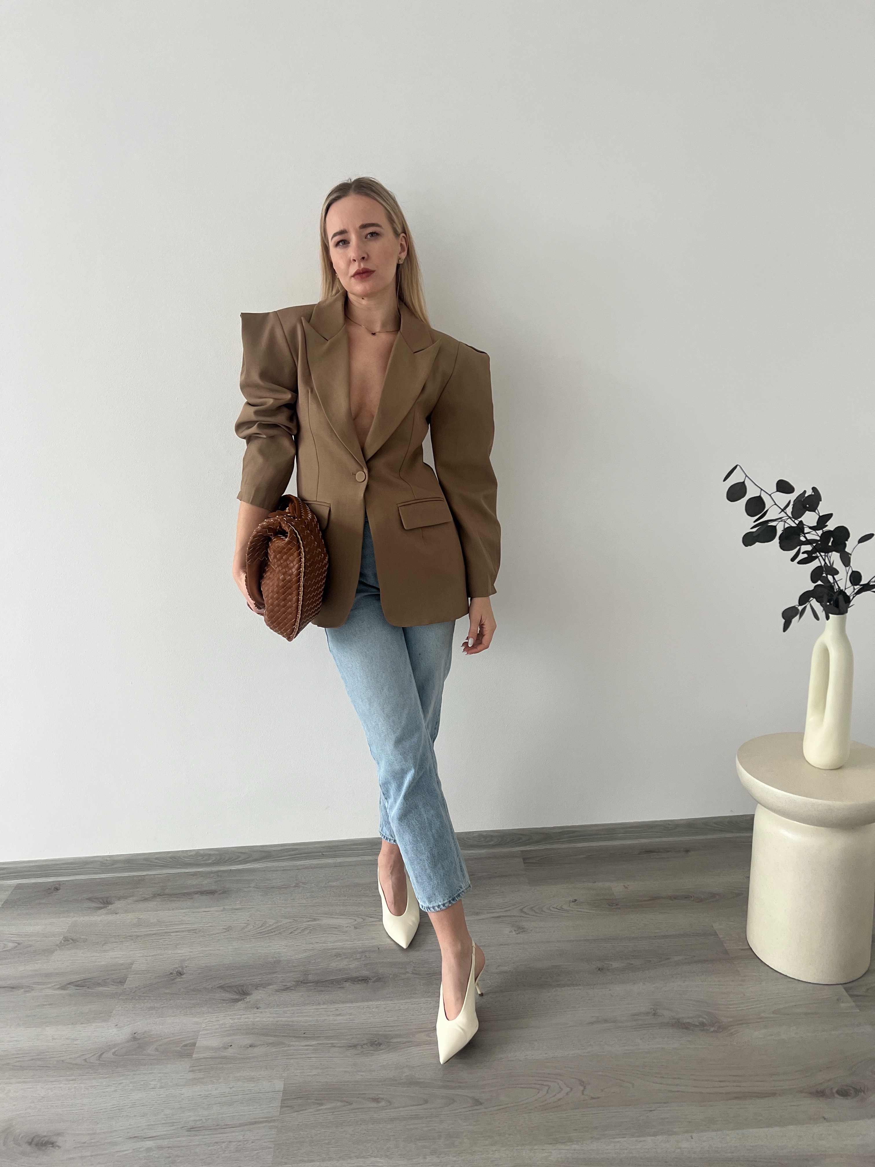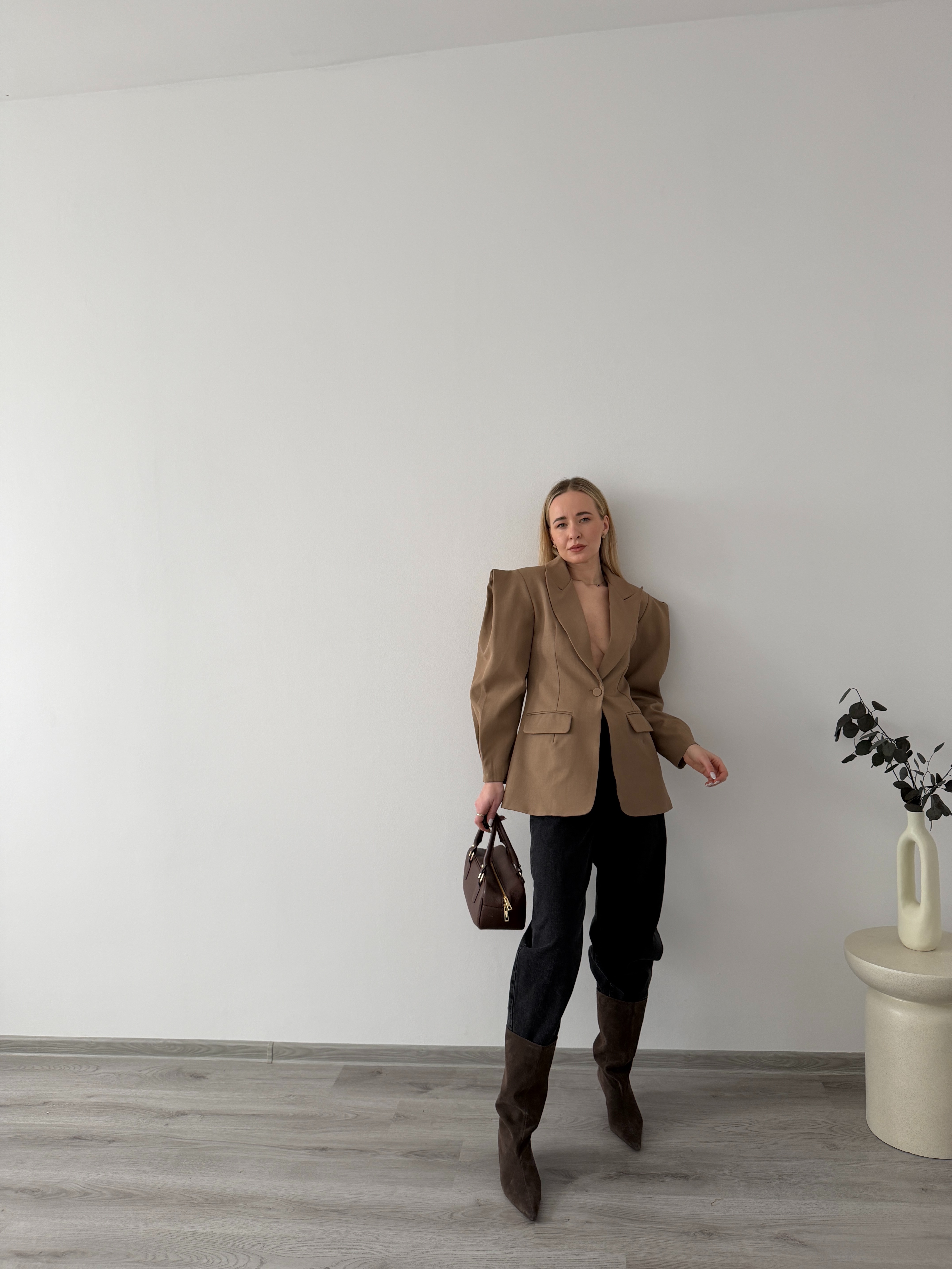 Elegantné sako s jemne naberanými rukávmi. Dodá outfitu štruktúru a štýl, vhodné do práce aj na formálnejšie príležitosti.
