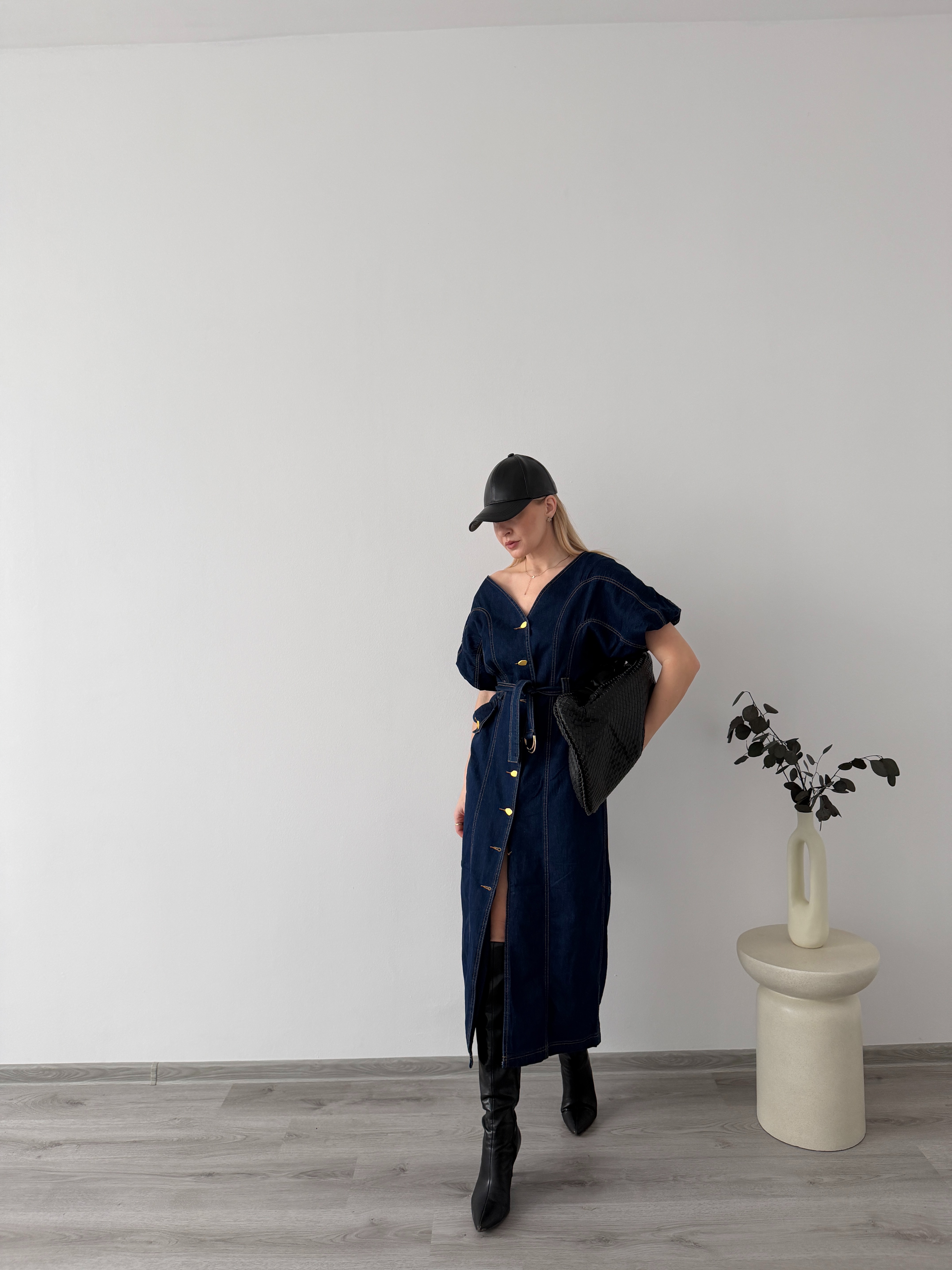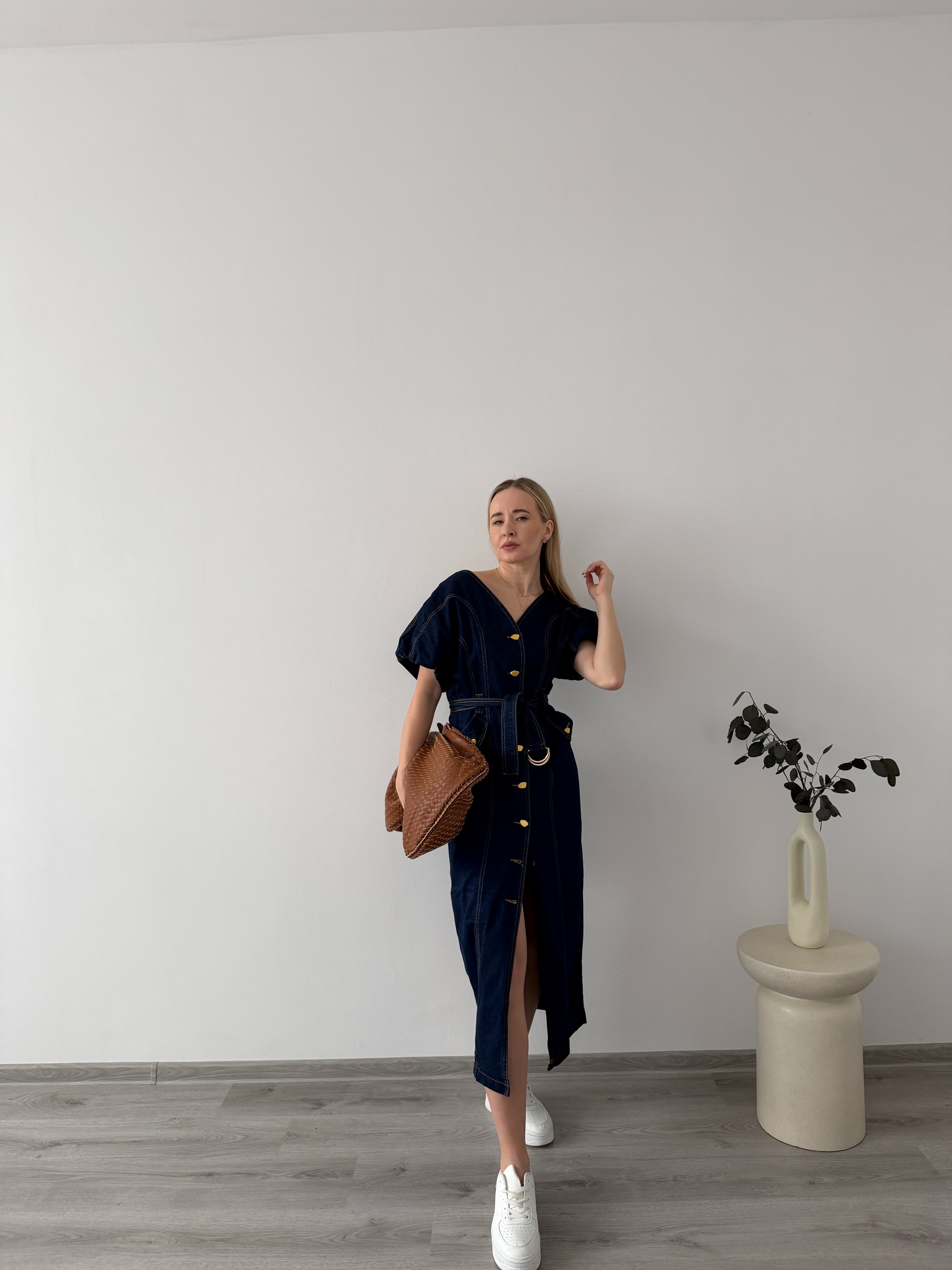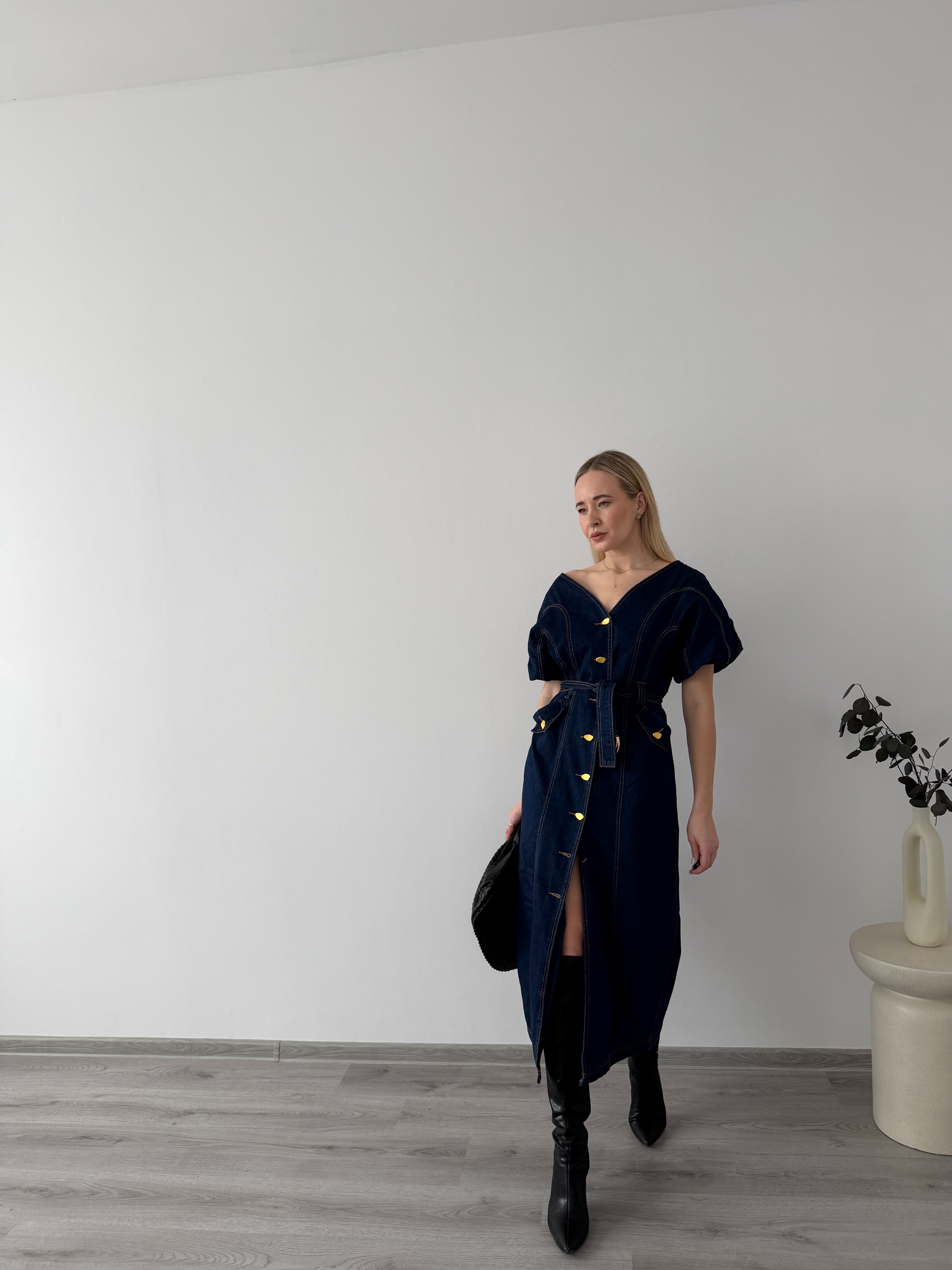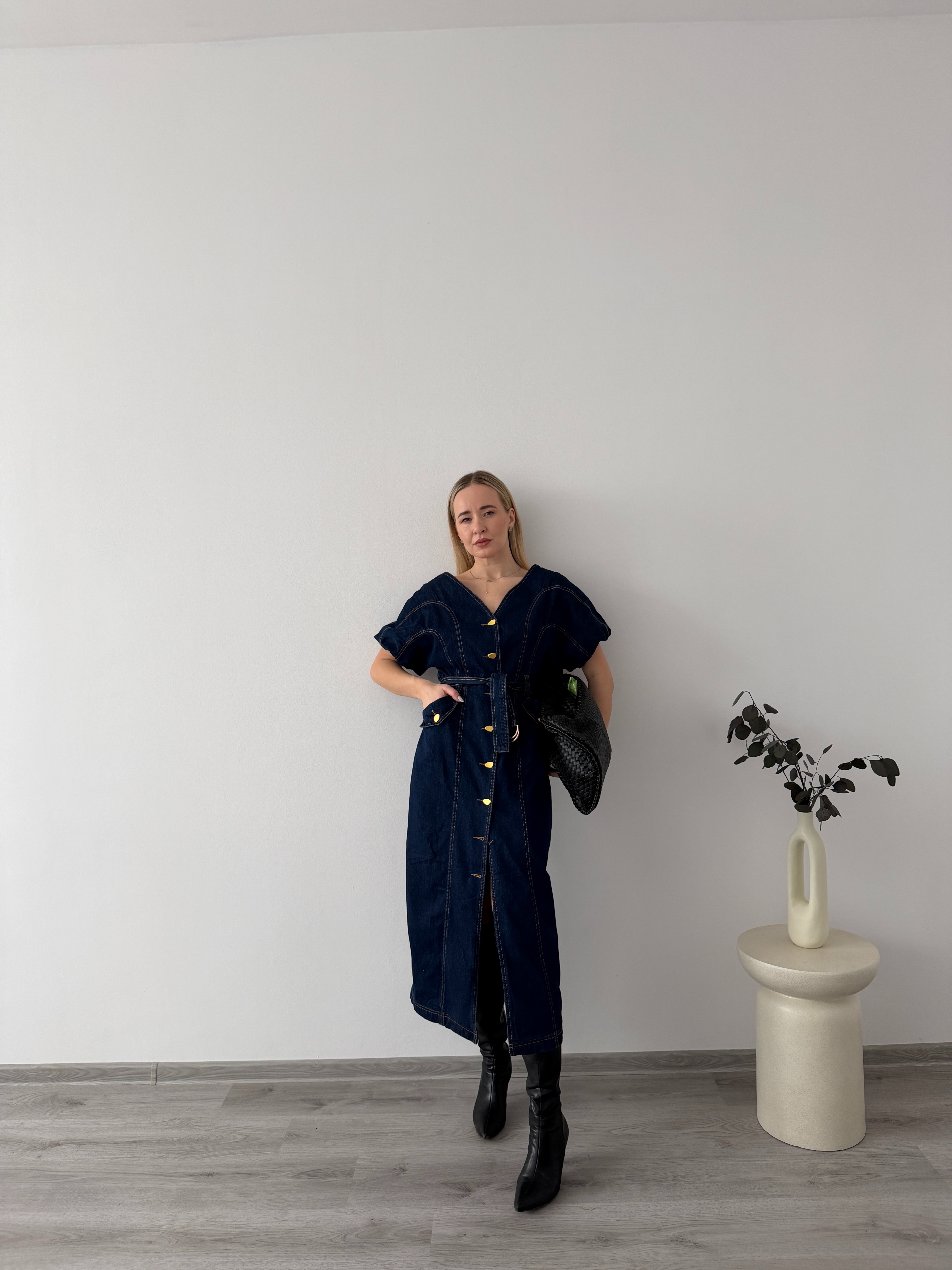 Denimové šaty s opaskom a gombíkmi po celej dĺžke. Praktický, ženský strih, ktorý krásne zvýrazní siluetu a hodí sa na celodenné nosenie.