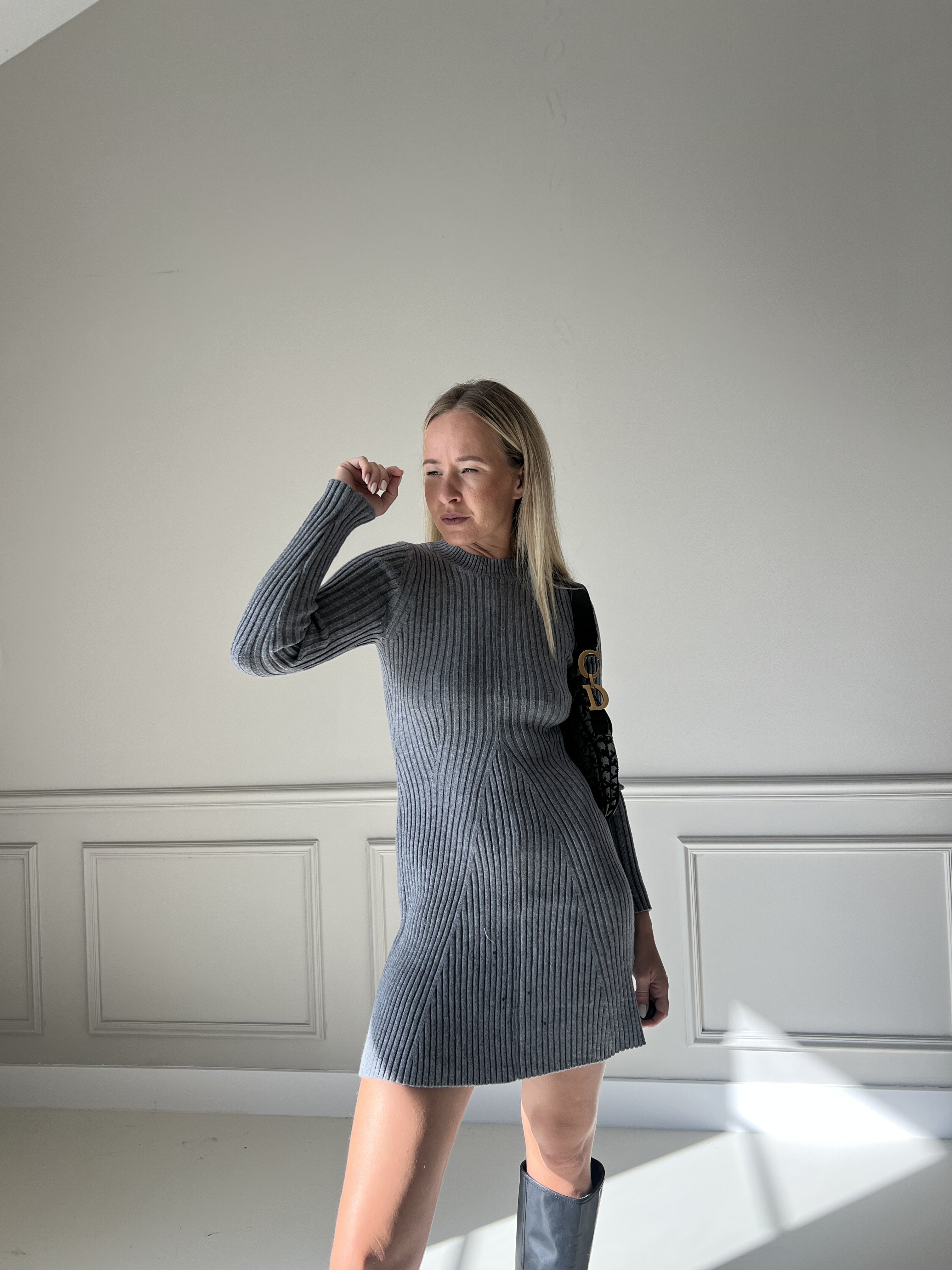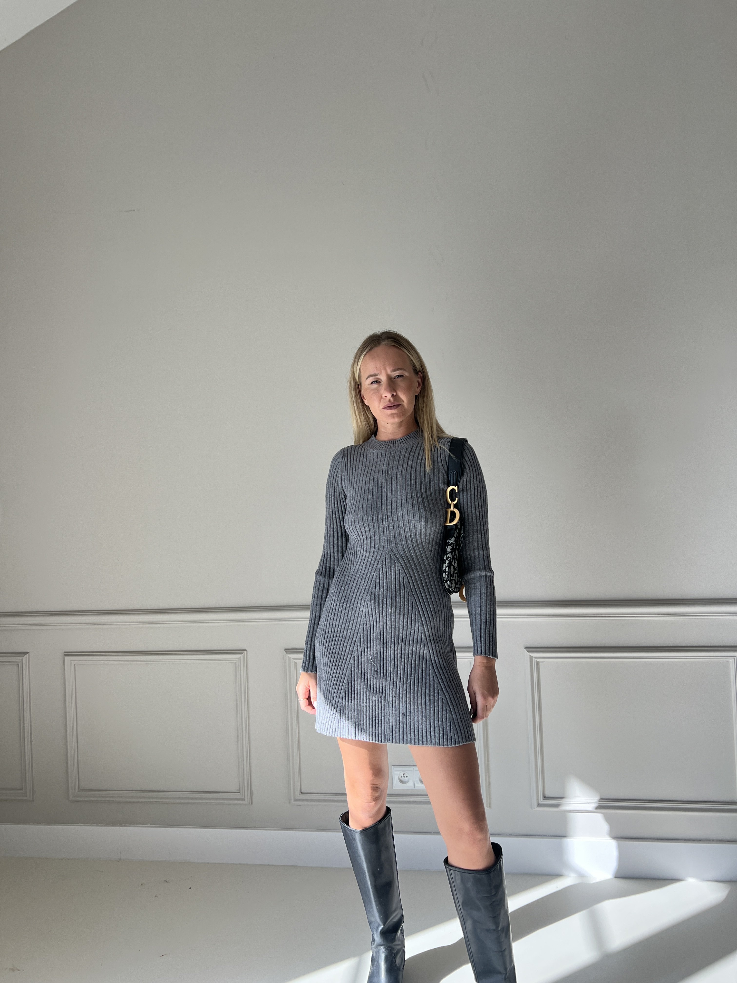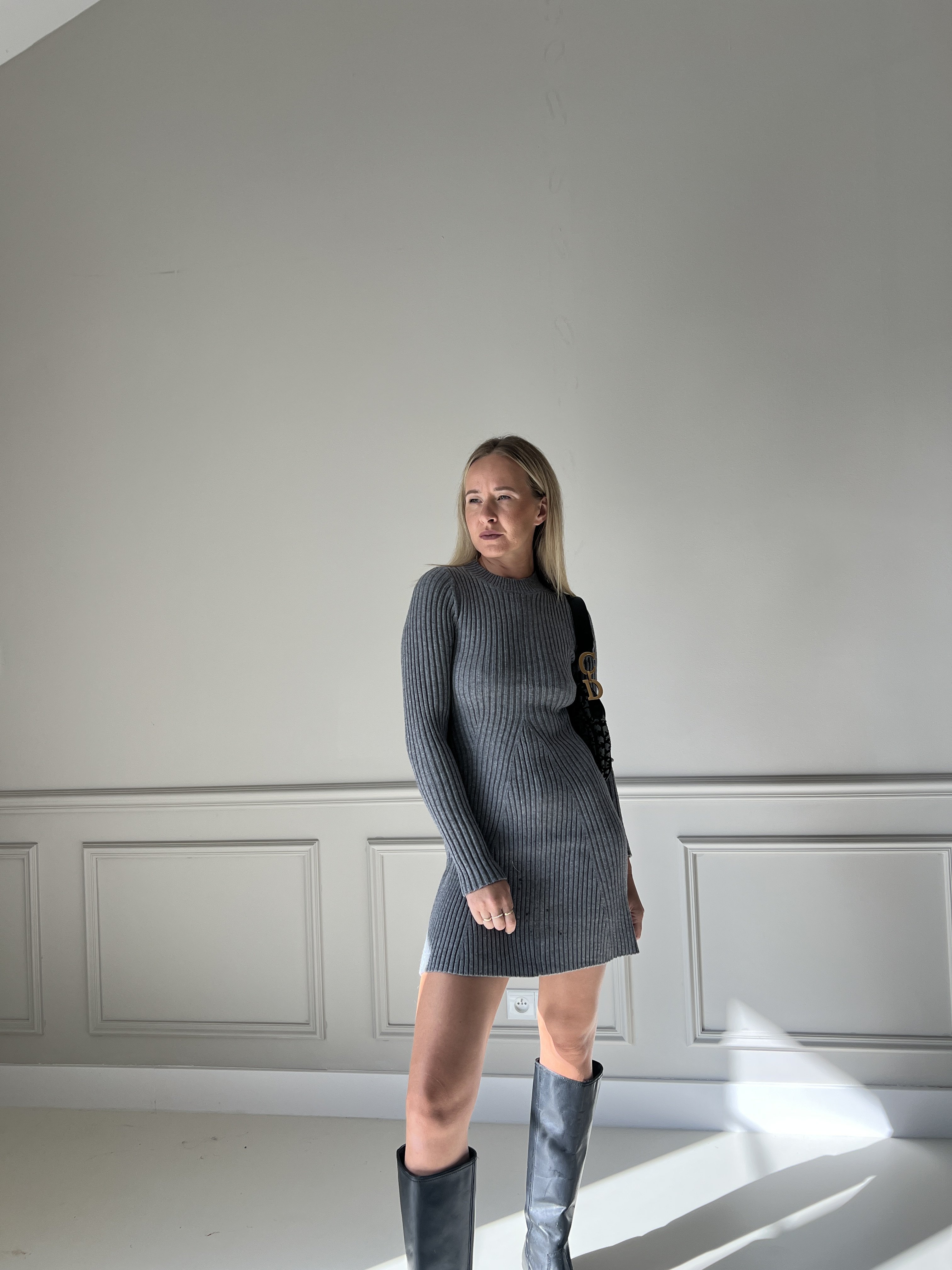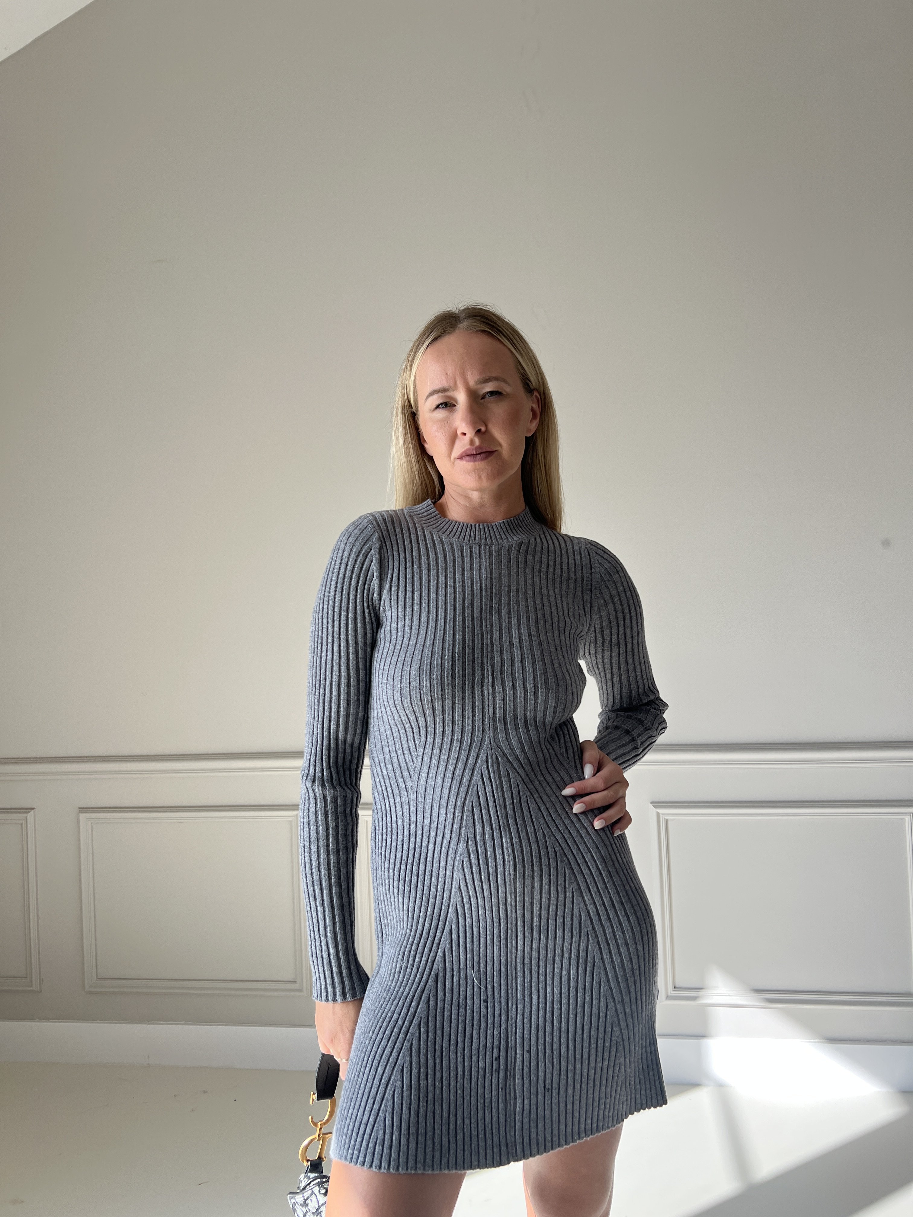 Úpletové šaty s vrúbkovanou štruktúrou, ktoré jemne obopnú postavu. Šaty sú z príjemného úpletu v mini dĺžke. Modelka má výšku 170cm, na sebe má veľkosť S/M