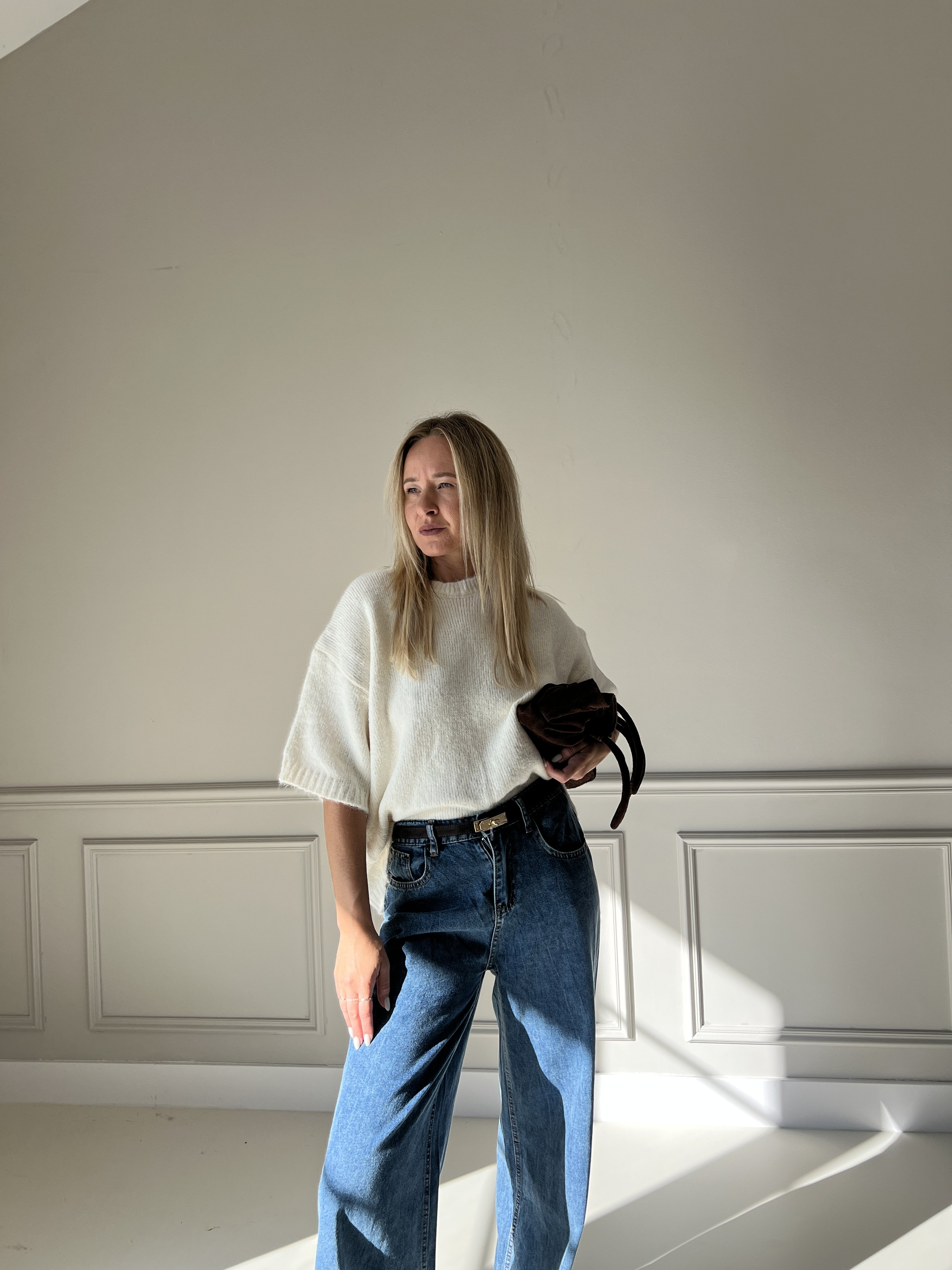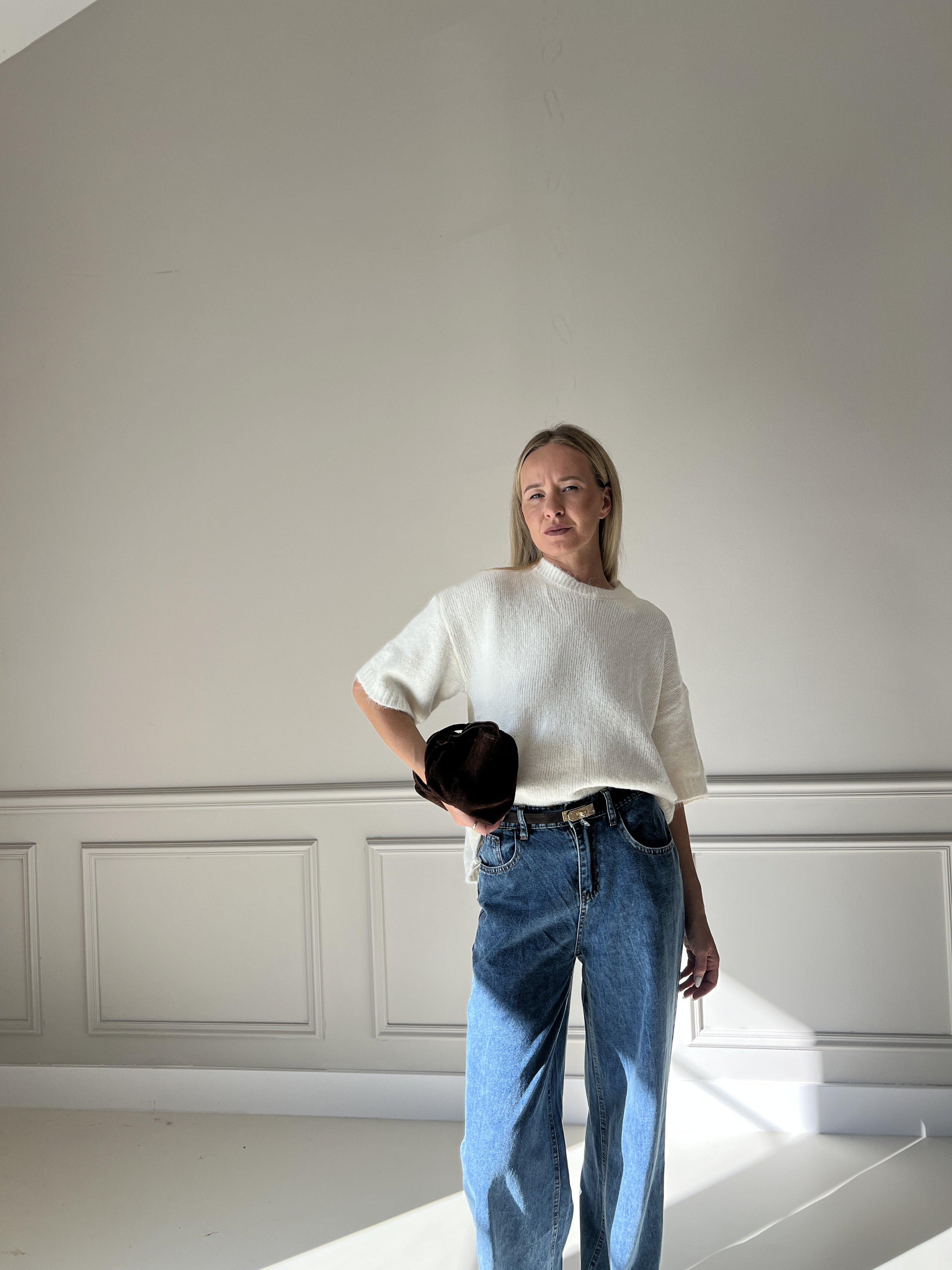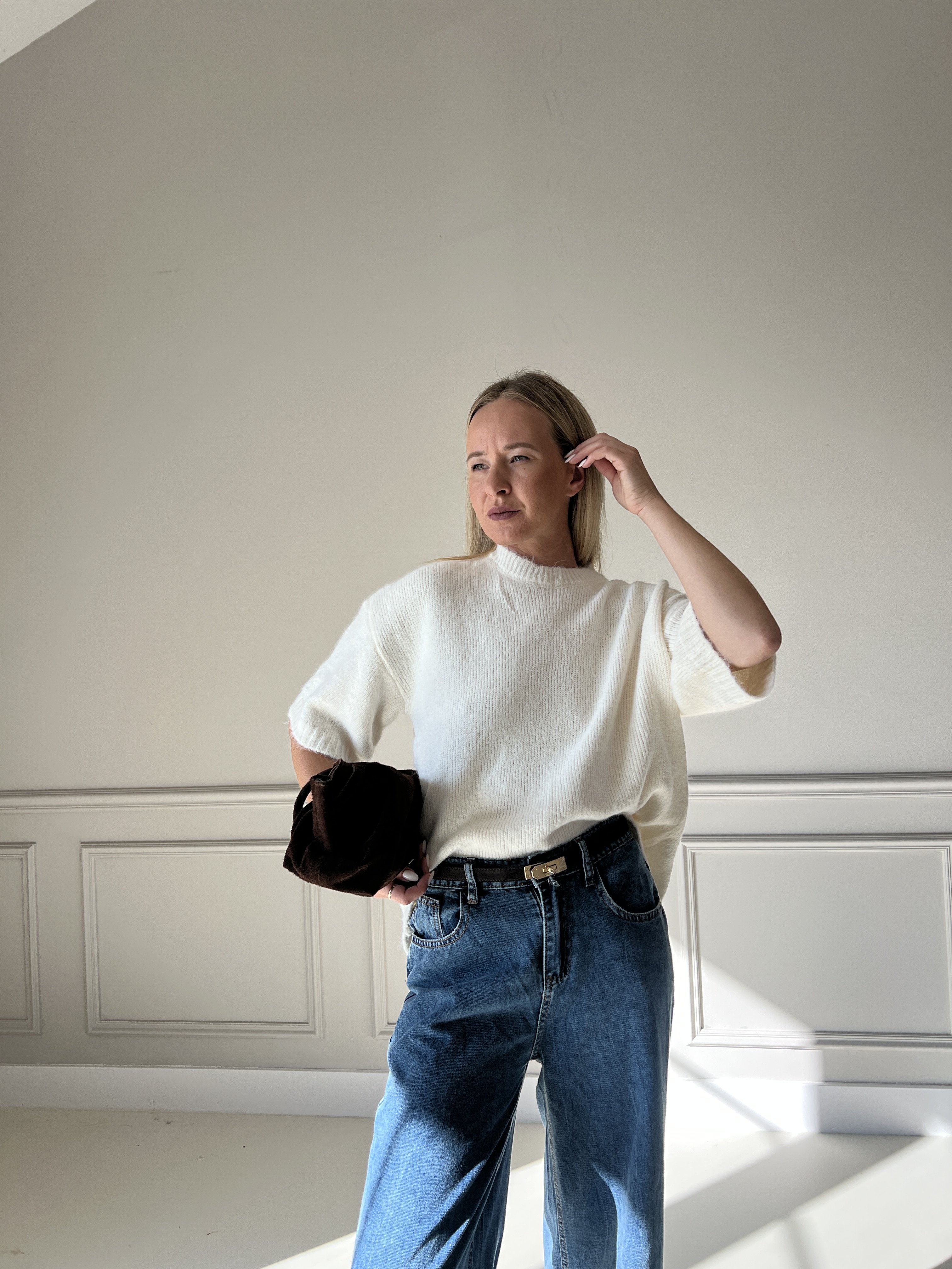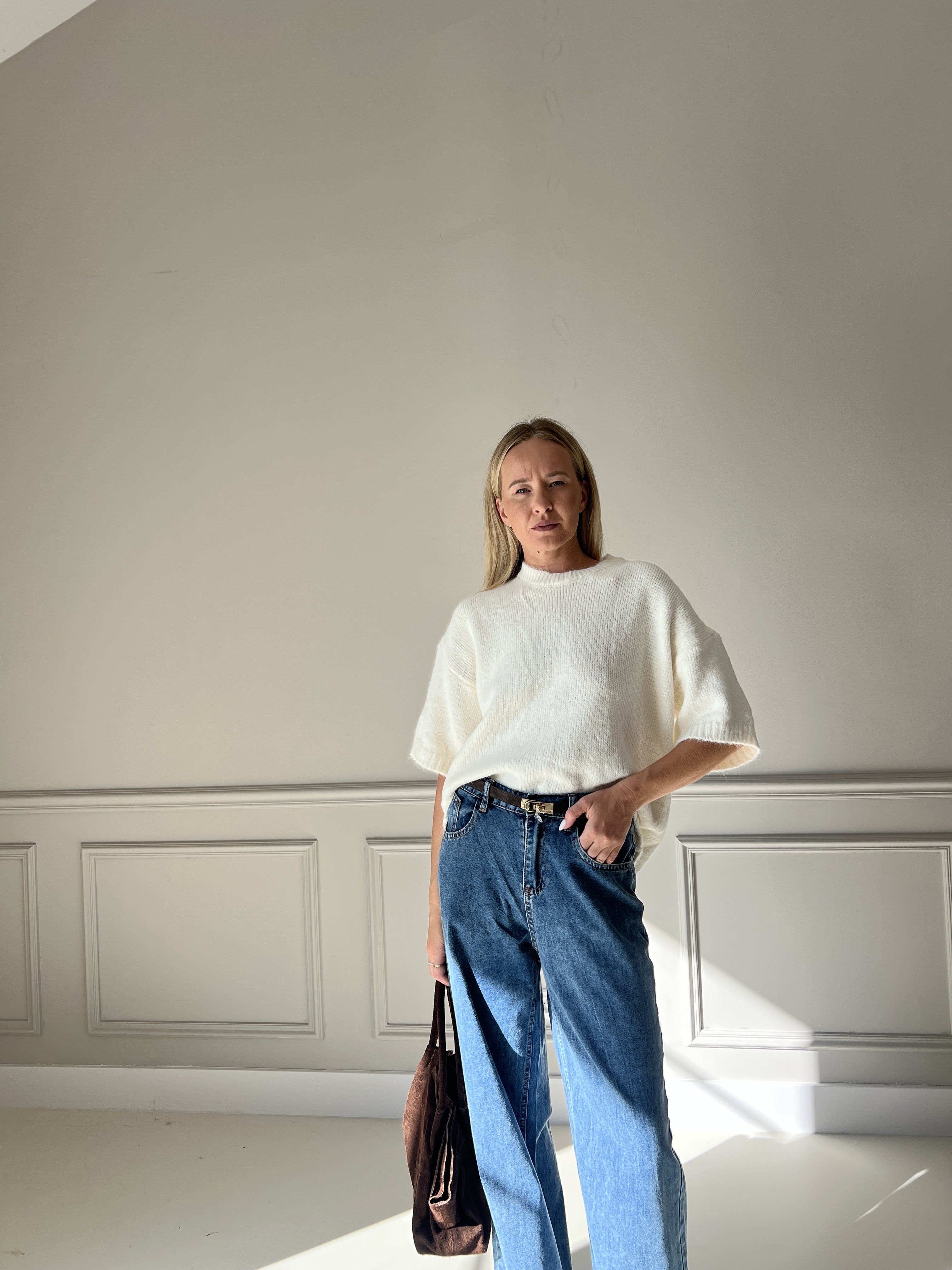 Elegantný pletený sveter s okrúhlym golierom. Sveter je z príjemnej pleteniny, ktorá vám poskytne komfort počas celého dňa. Modelka má výšku 170cm, nosí veľkosť S.