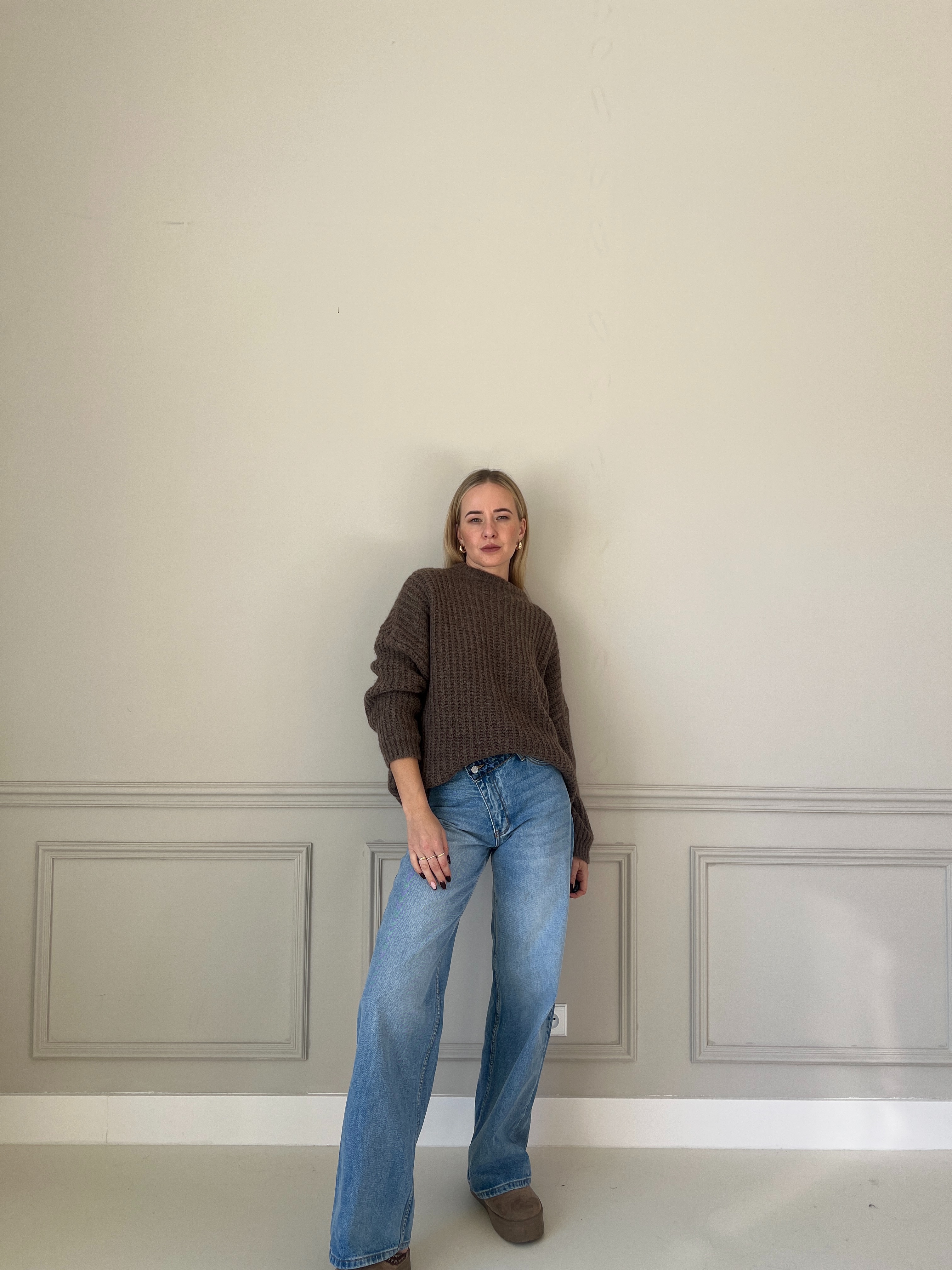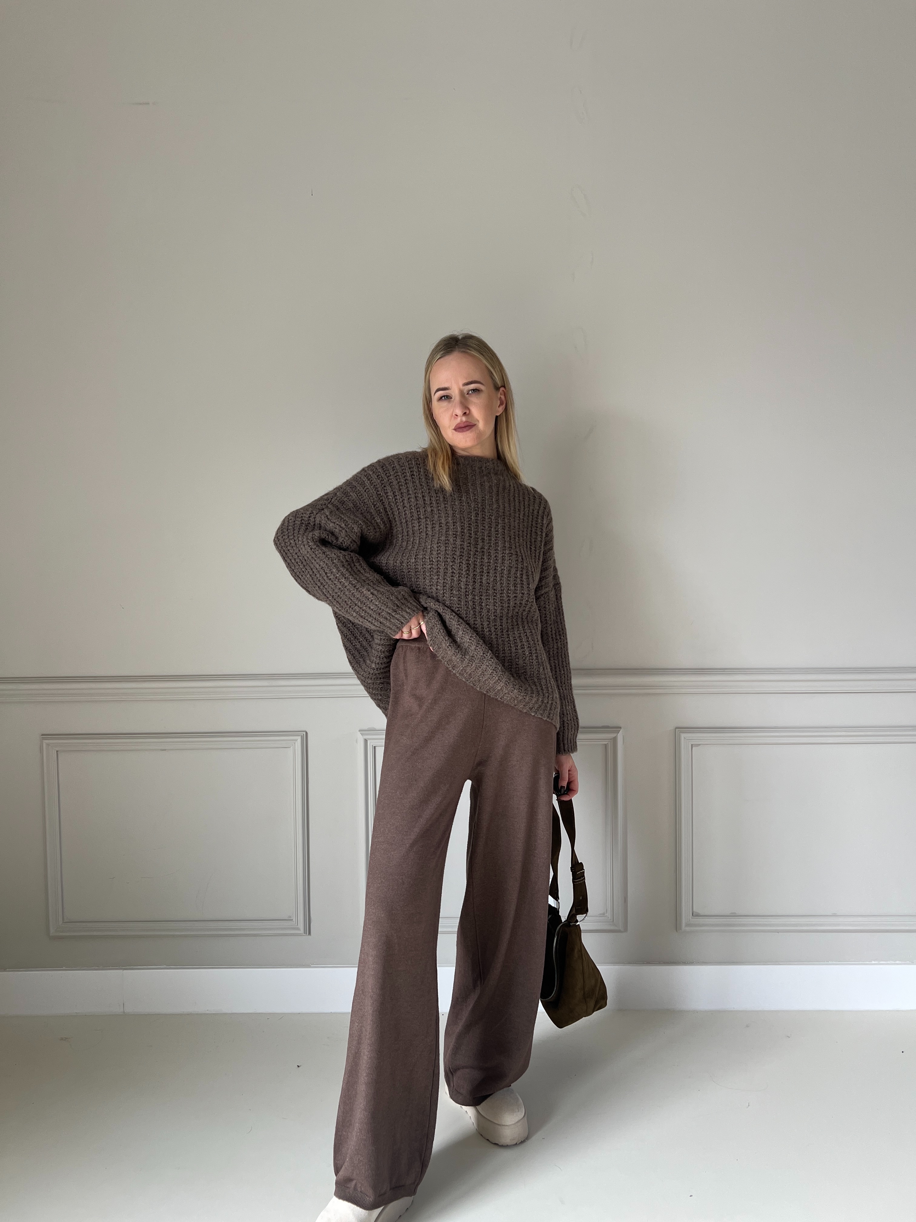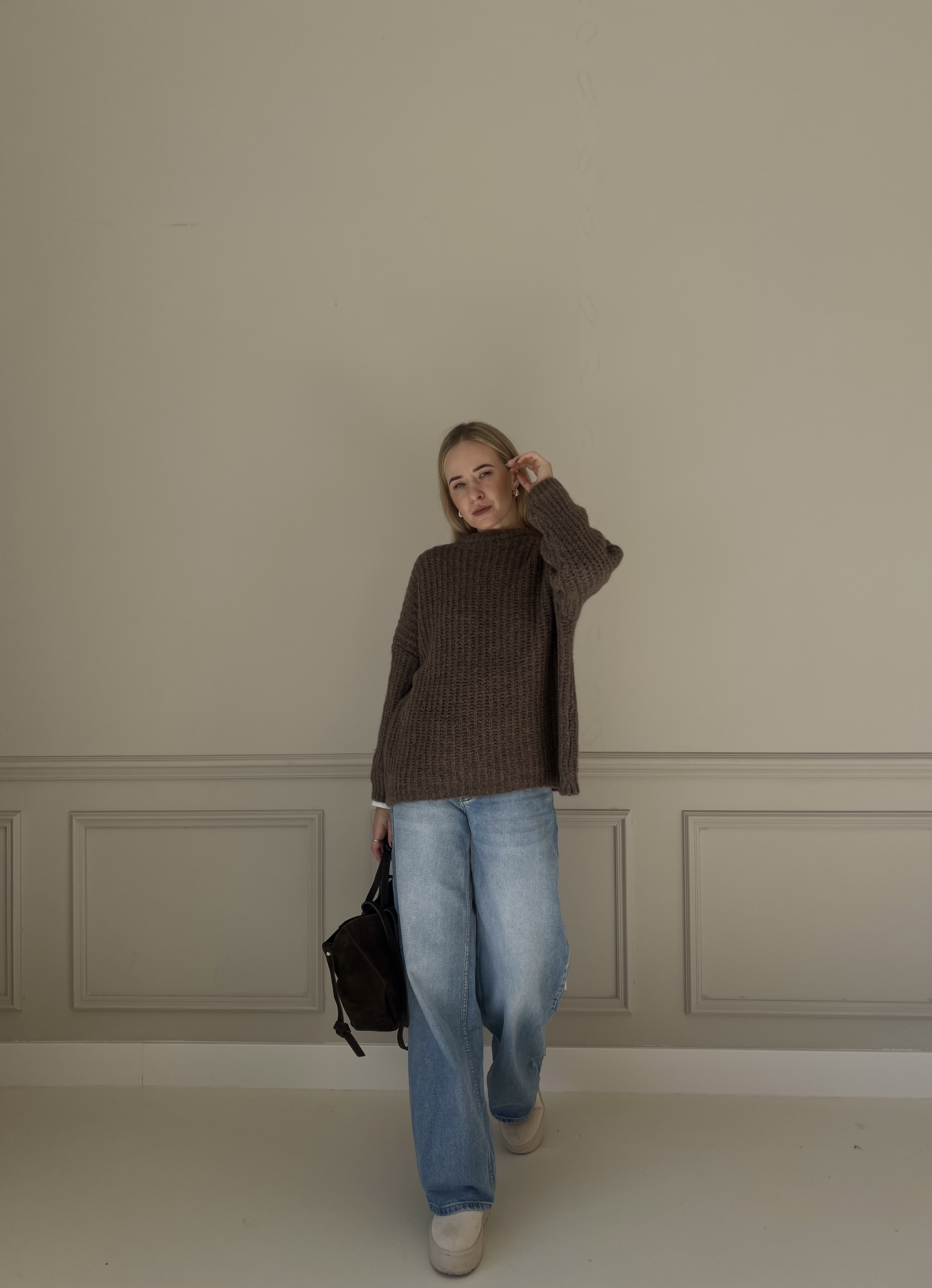 Mäkký, pohodlný pletený sveter v príjemnej hnedej farbe. Má padnutý strih s voľnými rukávmi, čo mu dodáva ležérny, ale stále upravený vzhľad. Rebrovaná pletenina pôsobí moderne a zároveň poskytuje dokonalé teplo. Ideálny na každodenné nosenie počas chladnej sezóny.