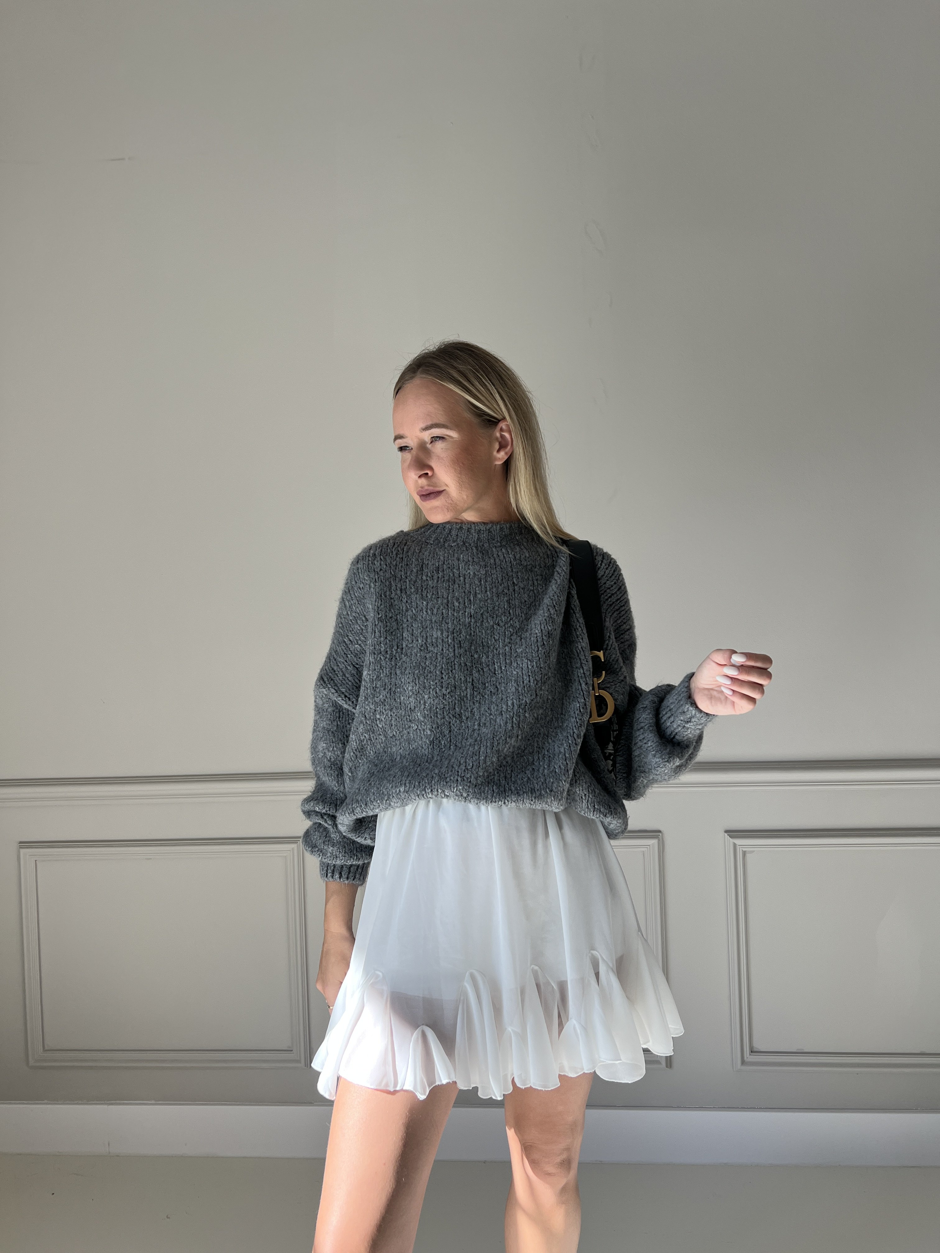 Pletený sveter s mohérom je skvelou voľbou do jesenných dní. Prijemný materiál a jednoduchý dizajn ti uľahčí kombináciu a vrstvenie do rôznych štýlov. Modelka má výšku 170cm, nosí veľkosť S.
