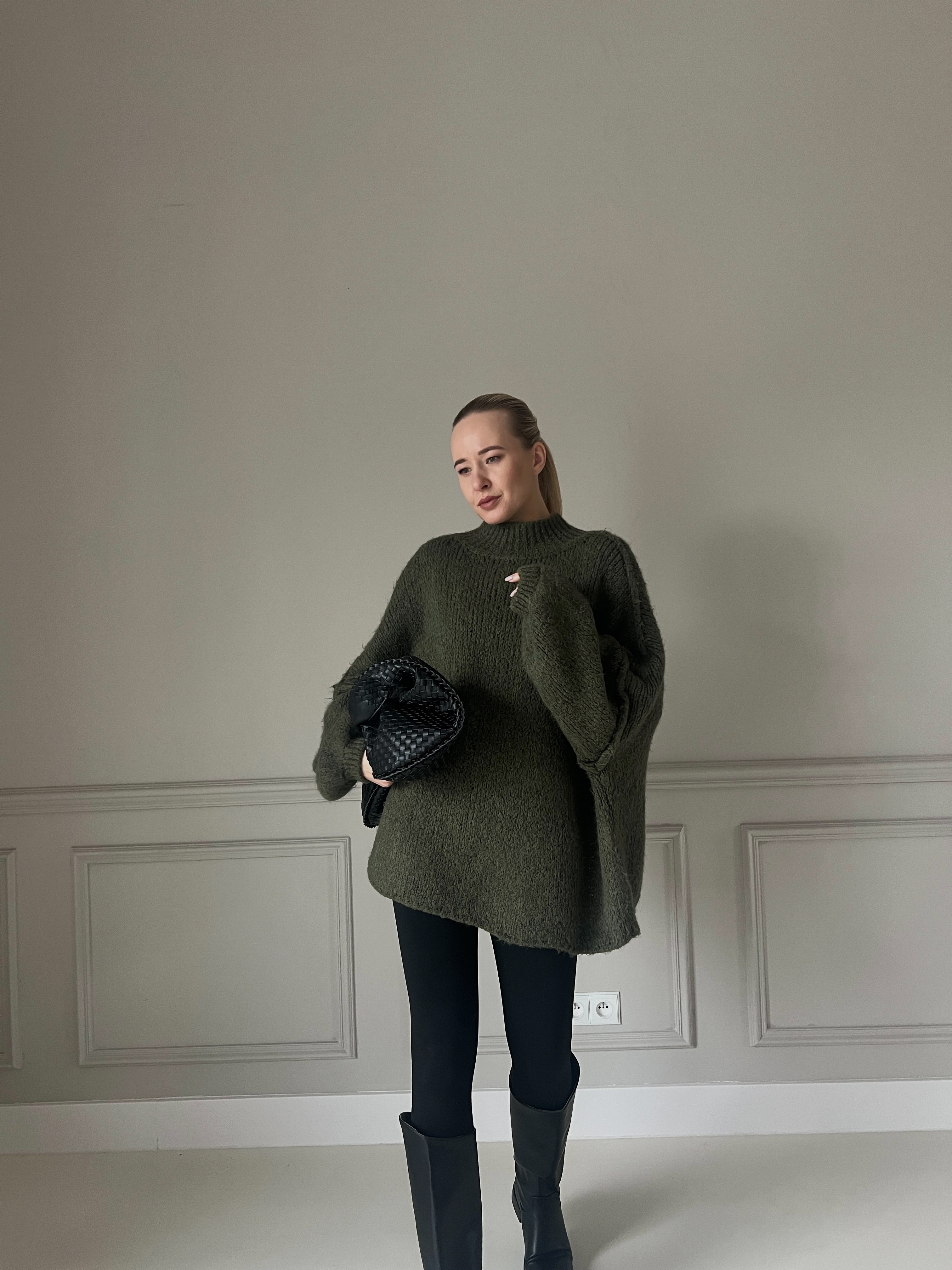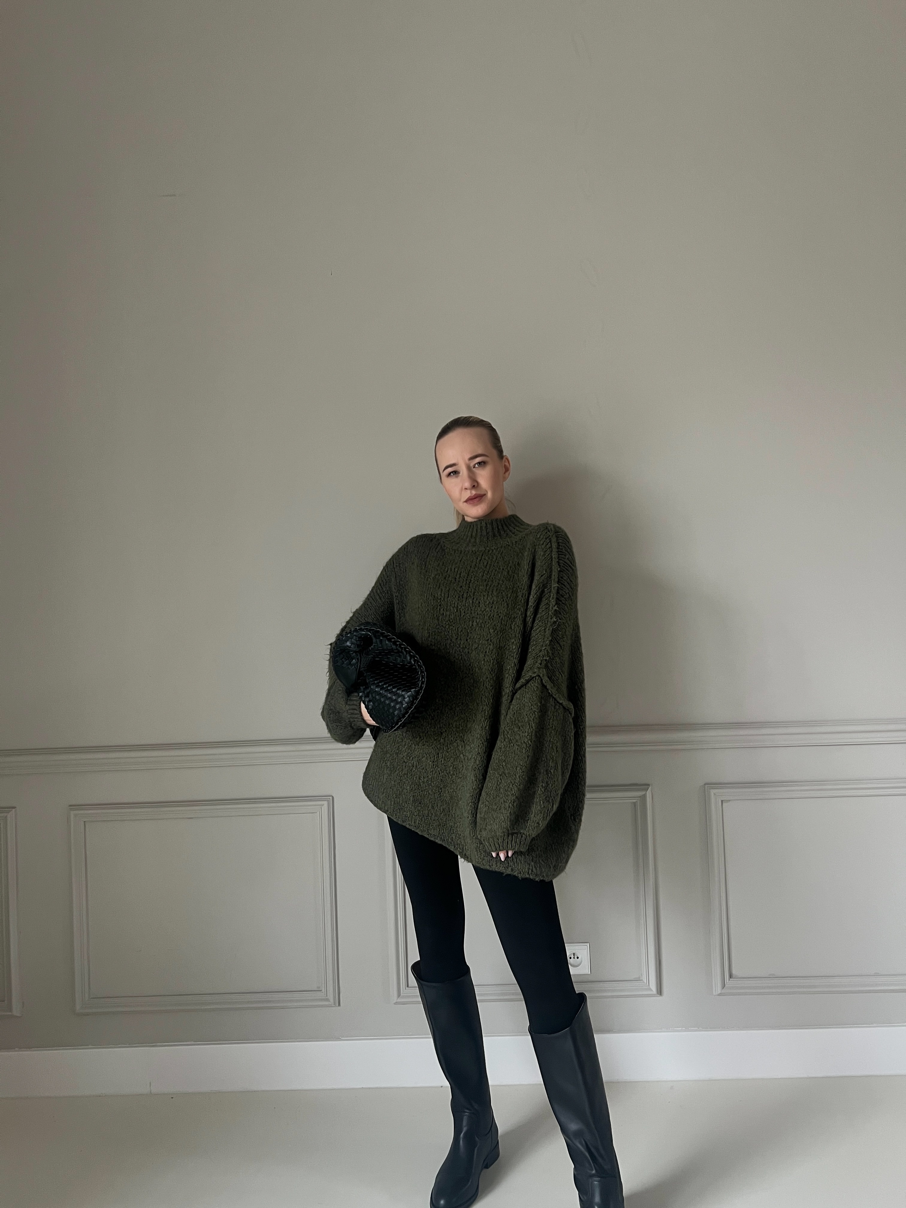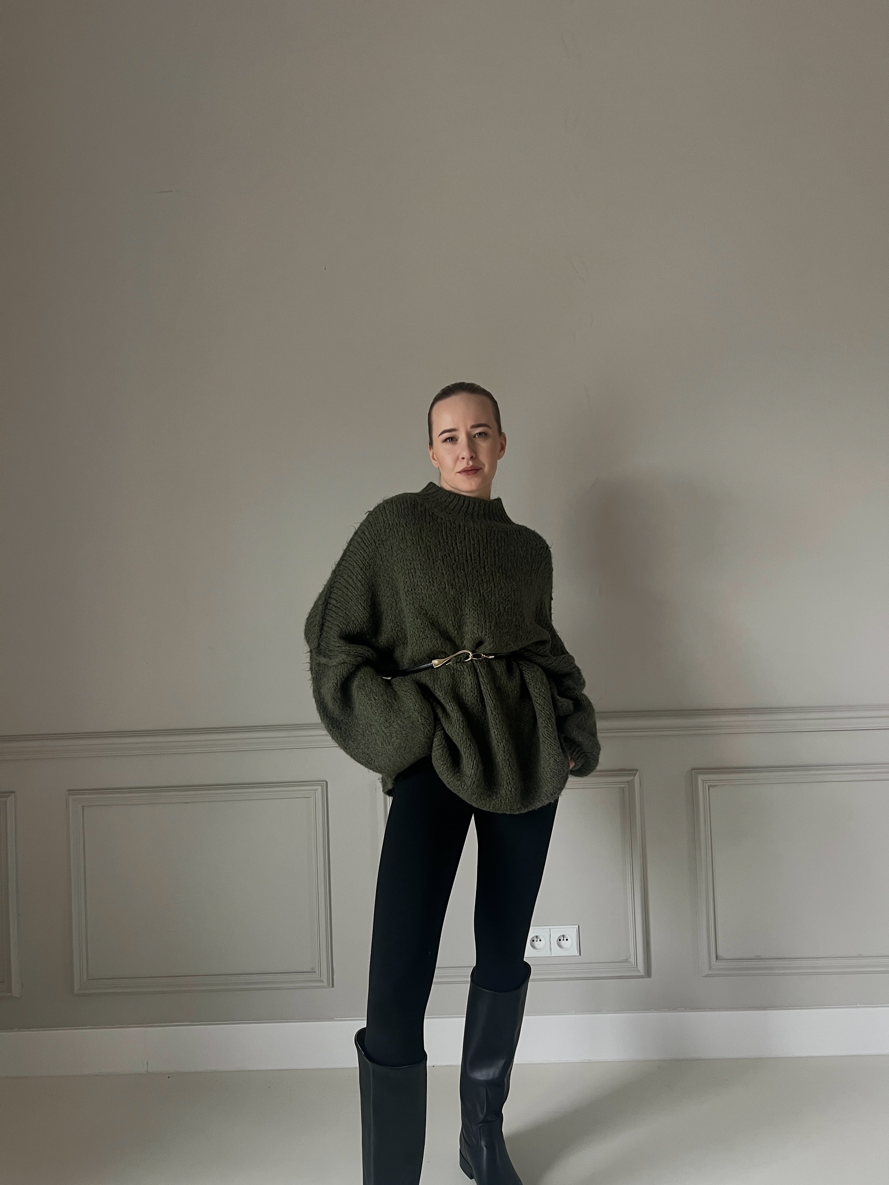 Hebký a ľahučký sveter v khaki farbe, ktorý pôsobí nadýchane a elegantne. Má voľný strih, spustené ramená a jemný, mäkký úplet. Perfektný k džínsom aj sukniam, vhodný na každodenné nosenie počas chladnejších dní.