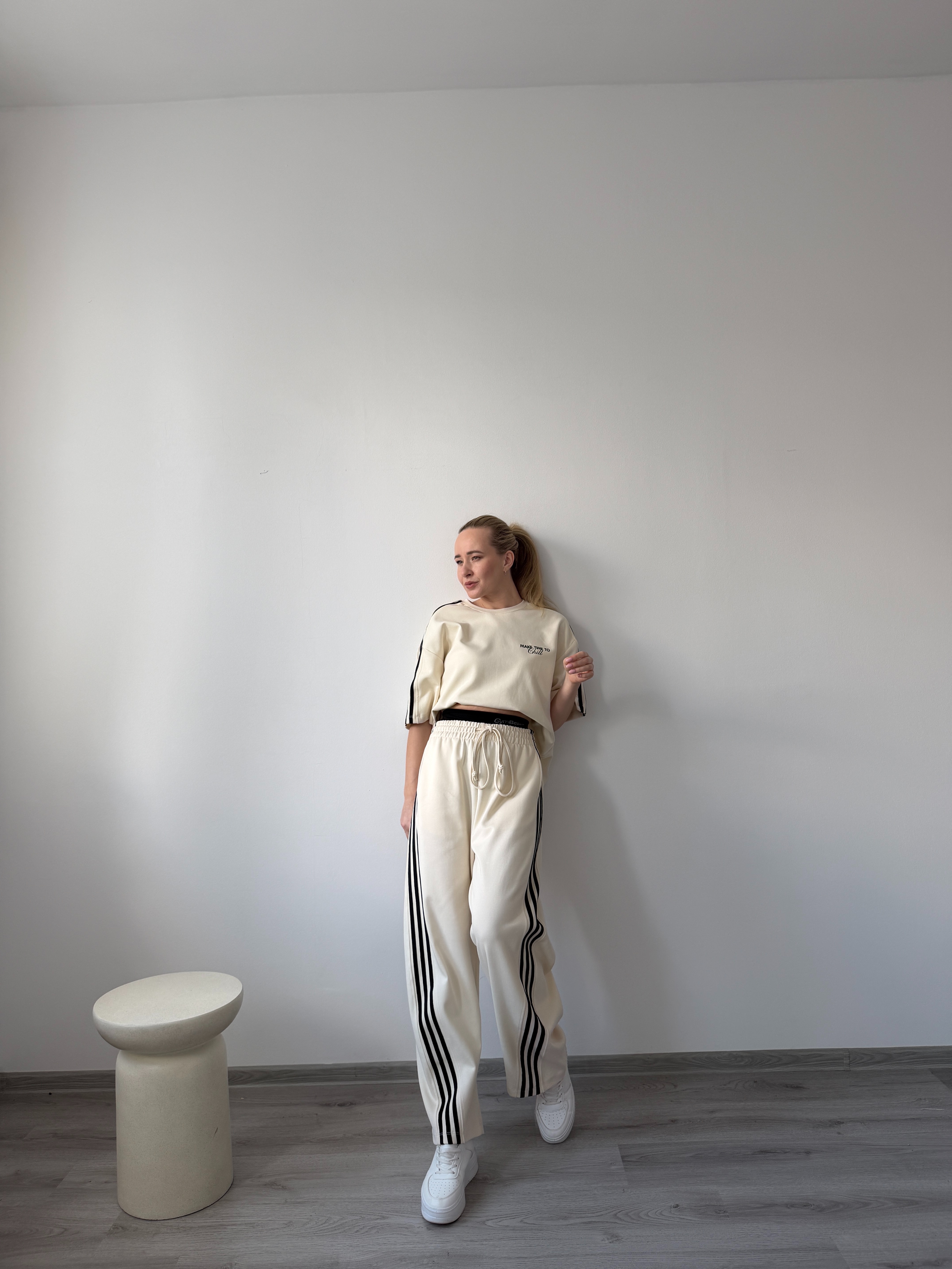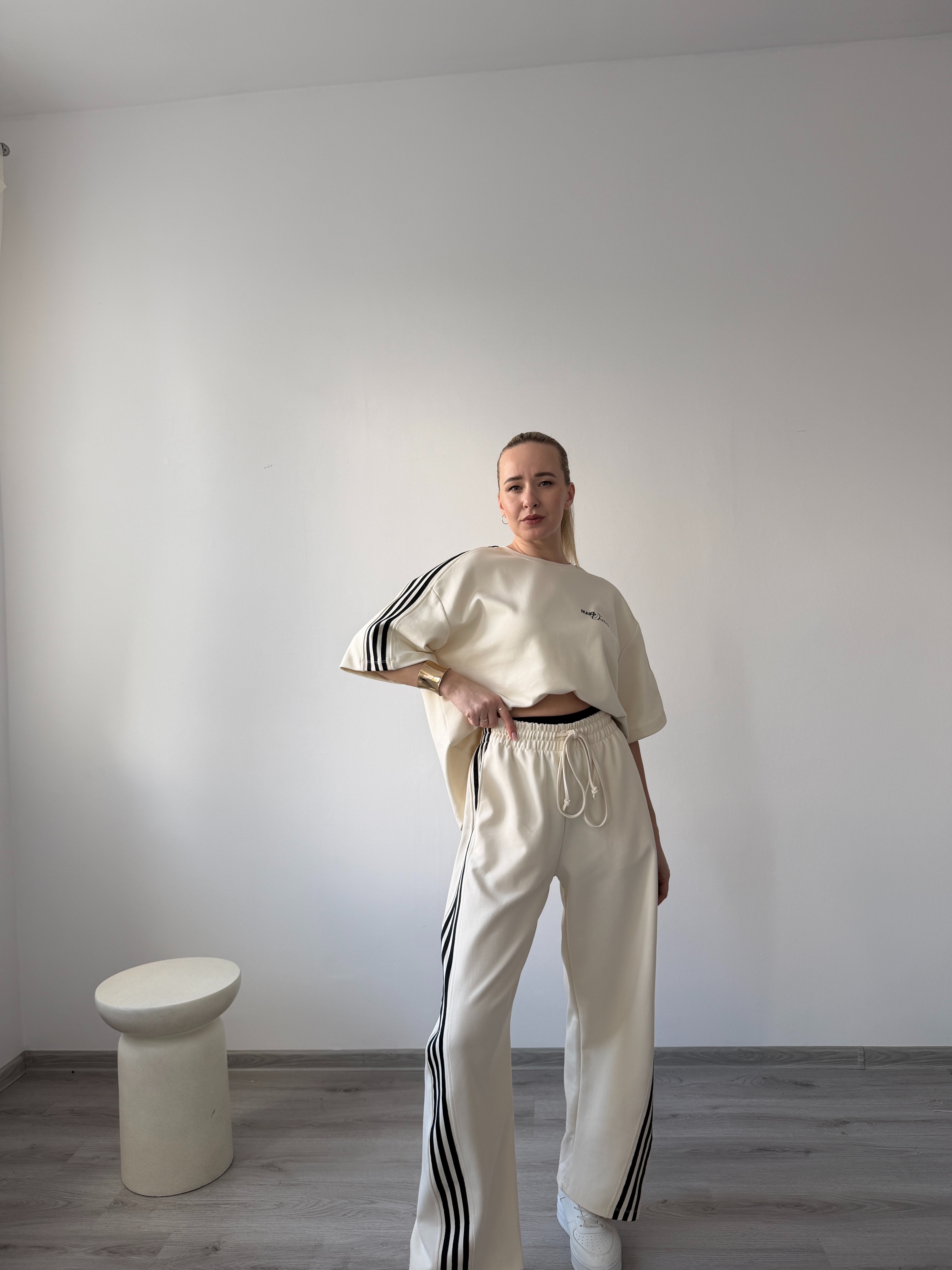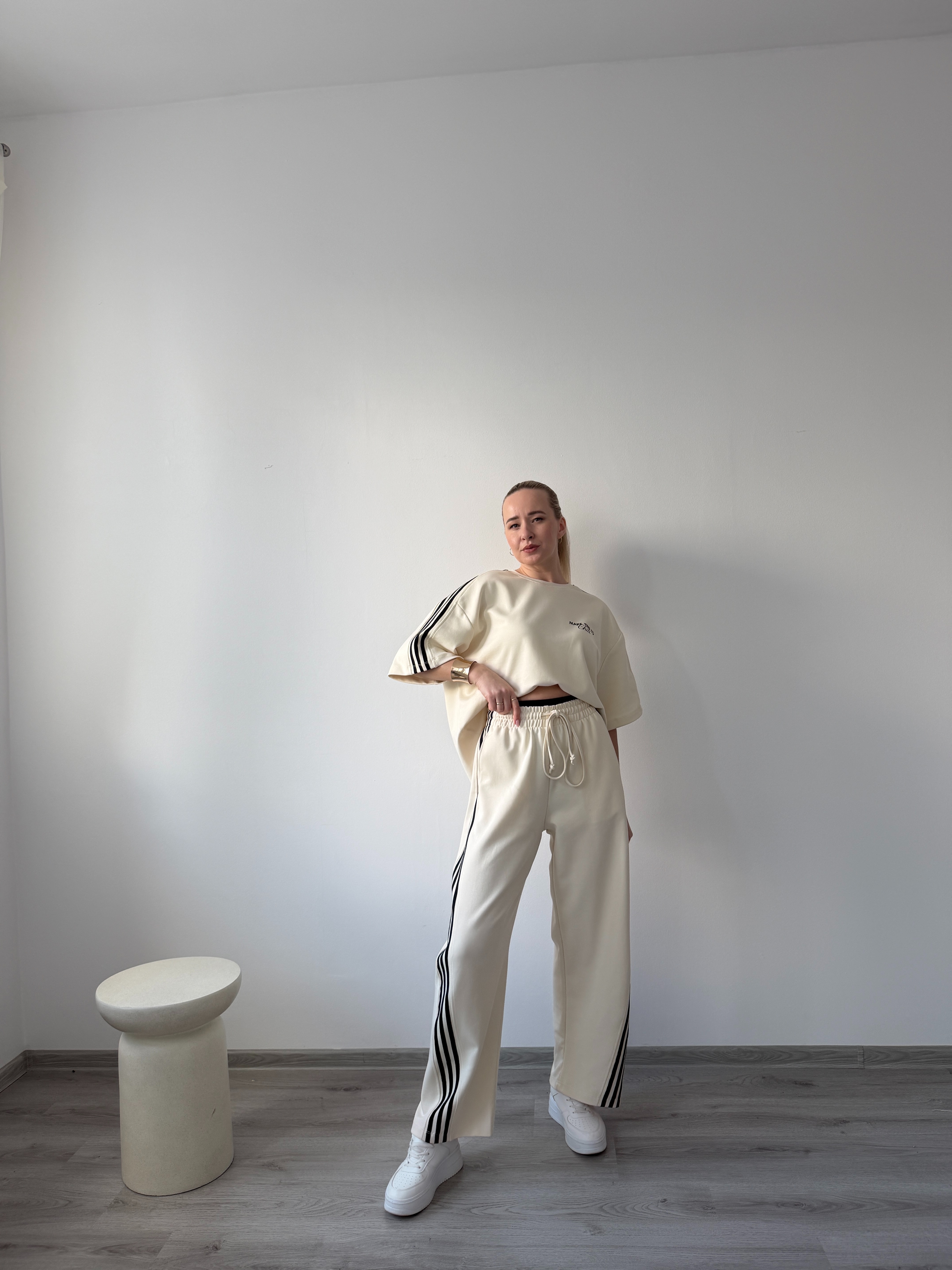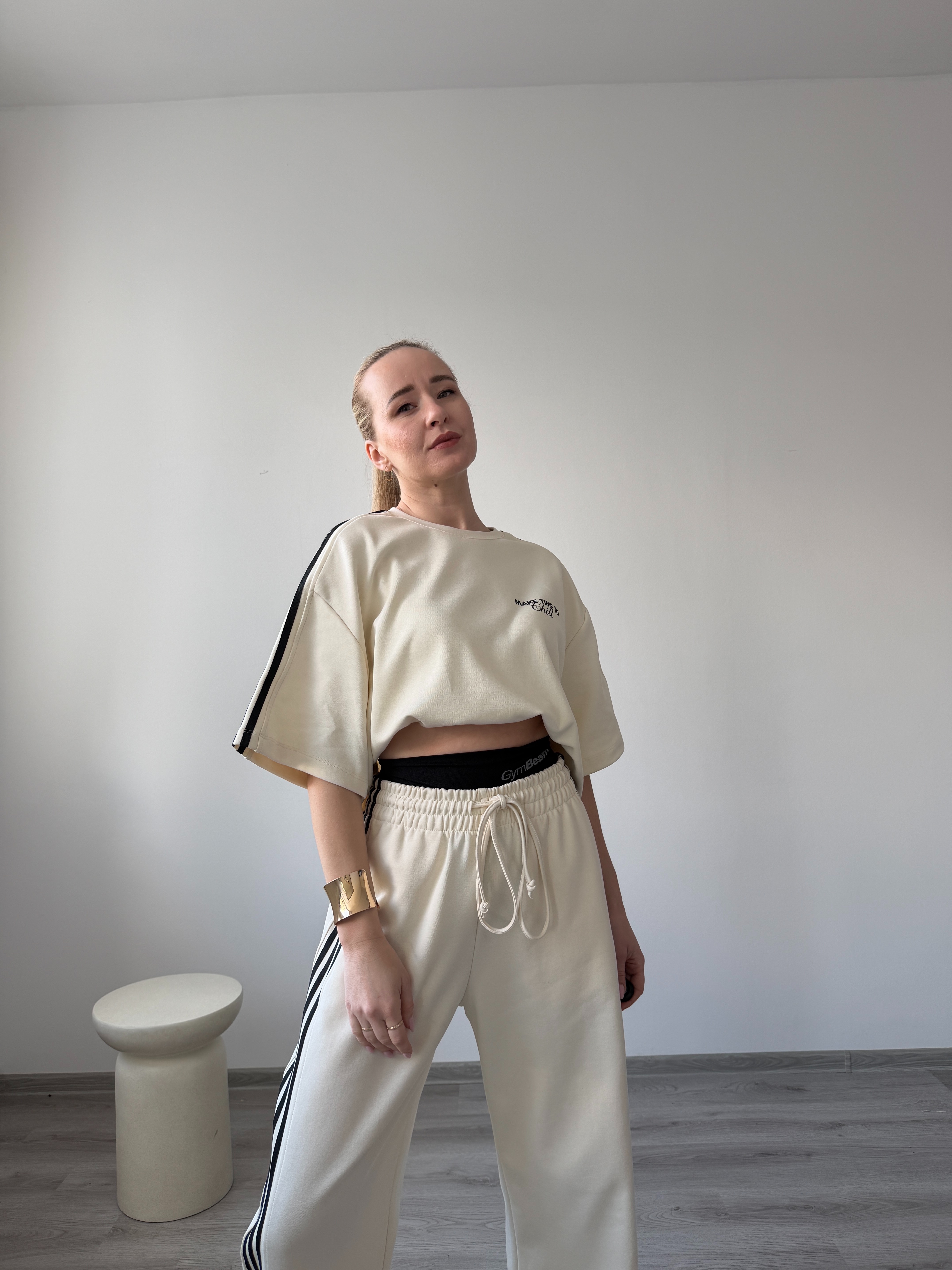 Minimalistický a pohodlný set v krémovej farbe. Voľná mikina a nohavice s elastickým pásom vytvárajú štýlový casual outfit na každý deň. Modelka má výšku 170cm, na sebe má veľkosť s/m. Nad 170cm odporúčame veľkosť m/l.