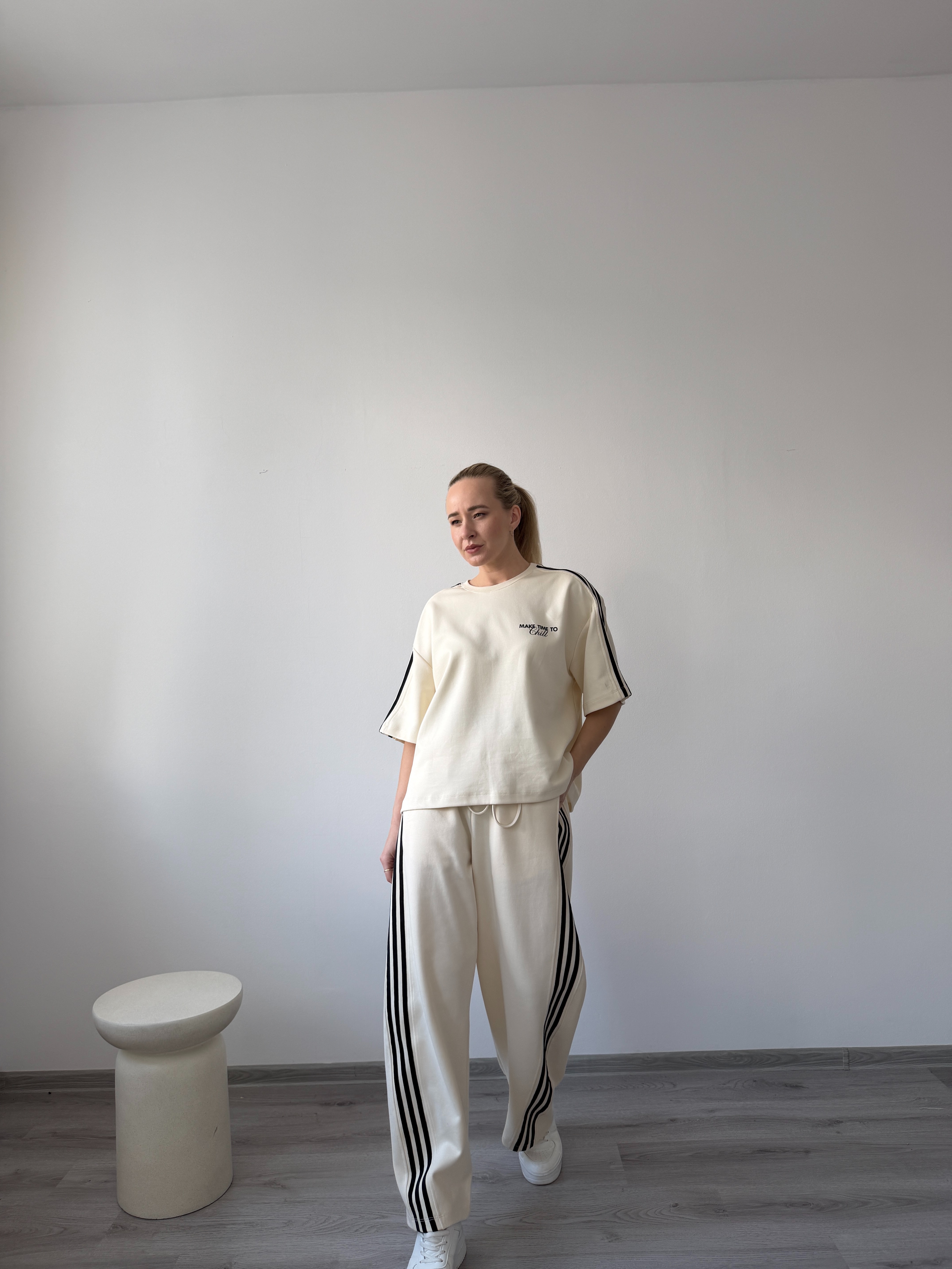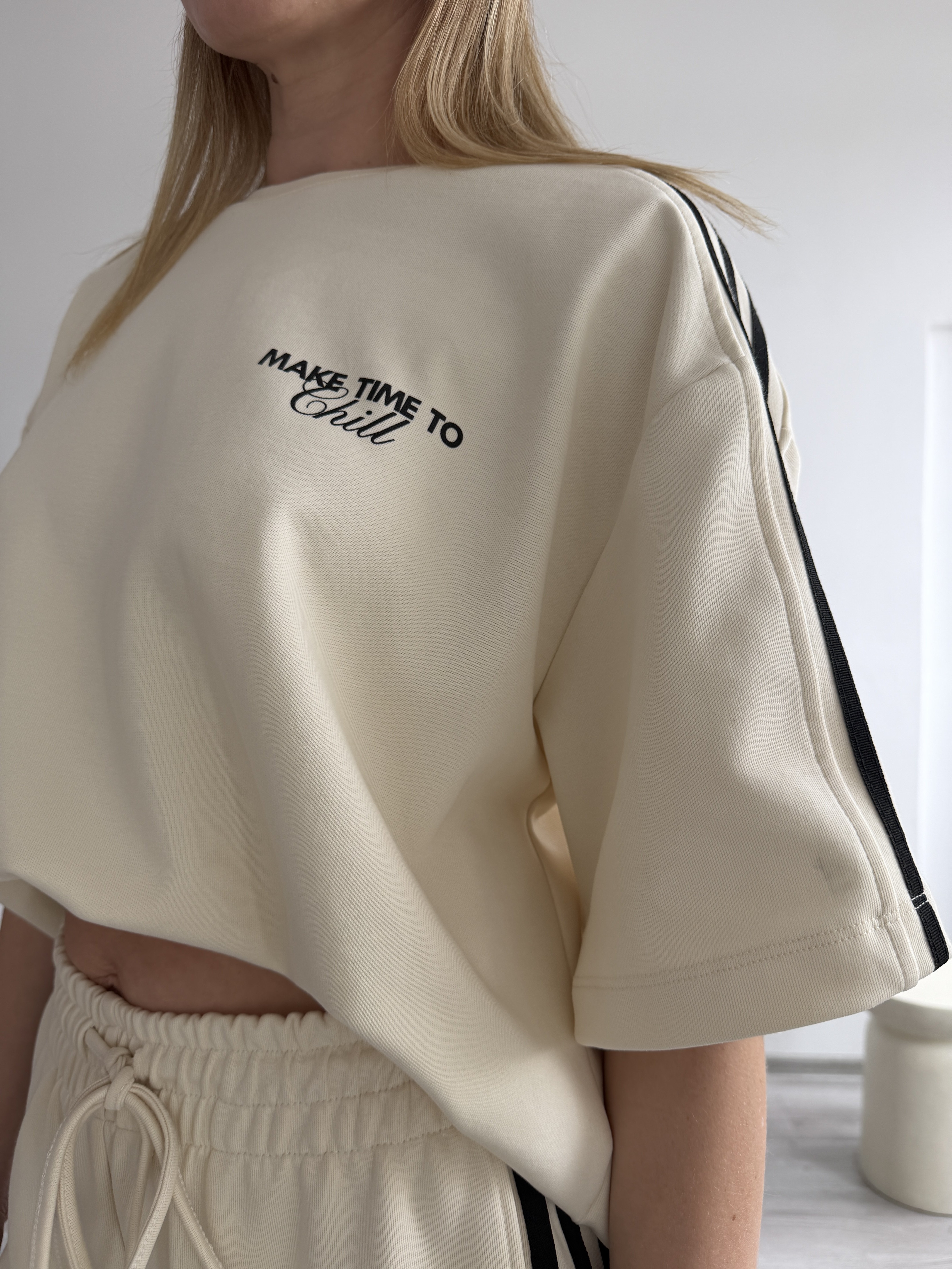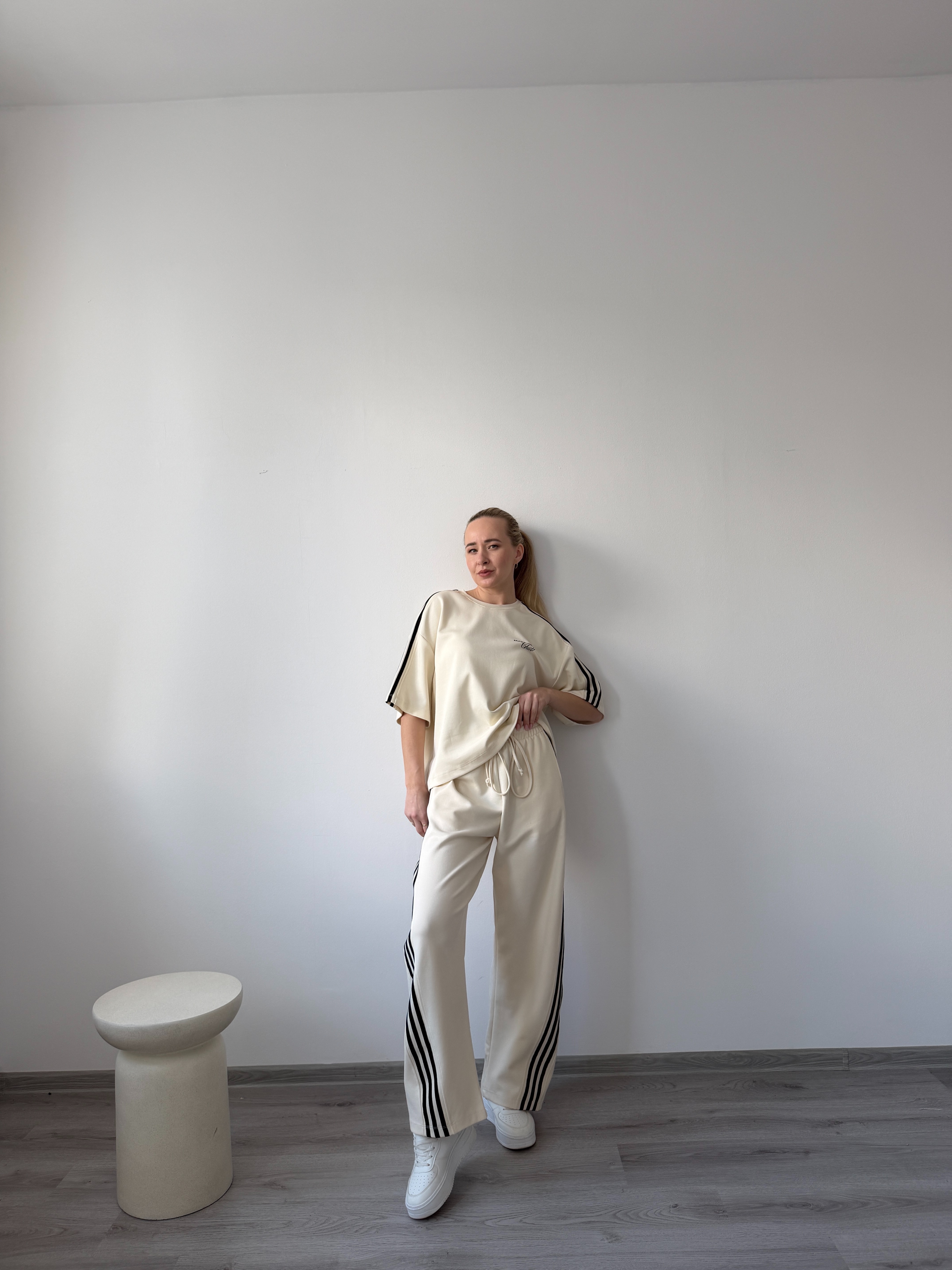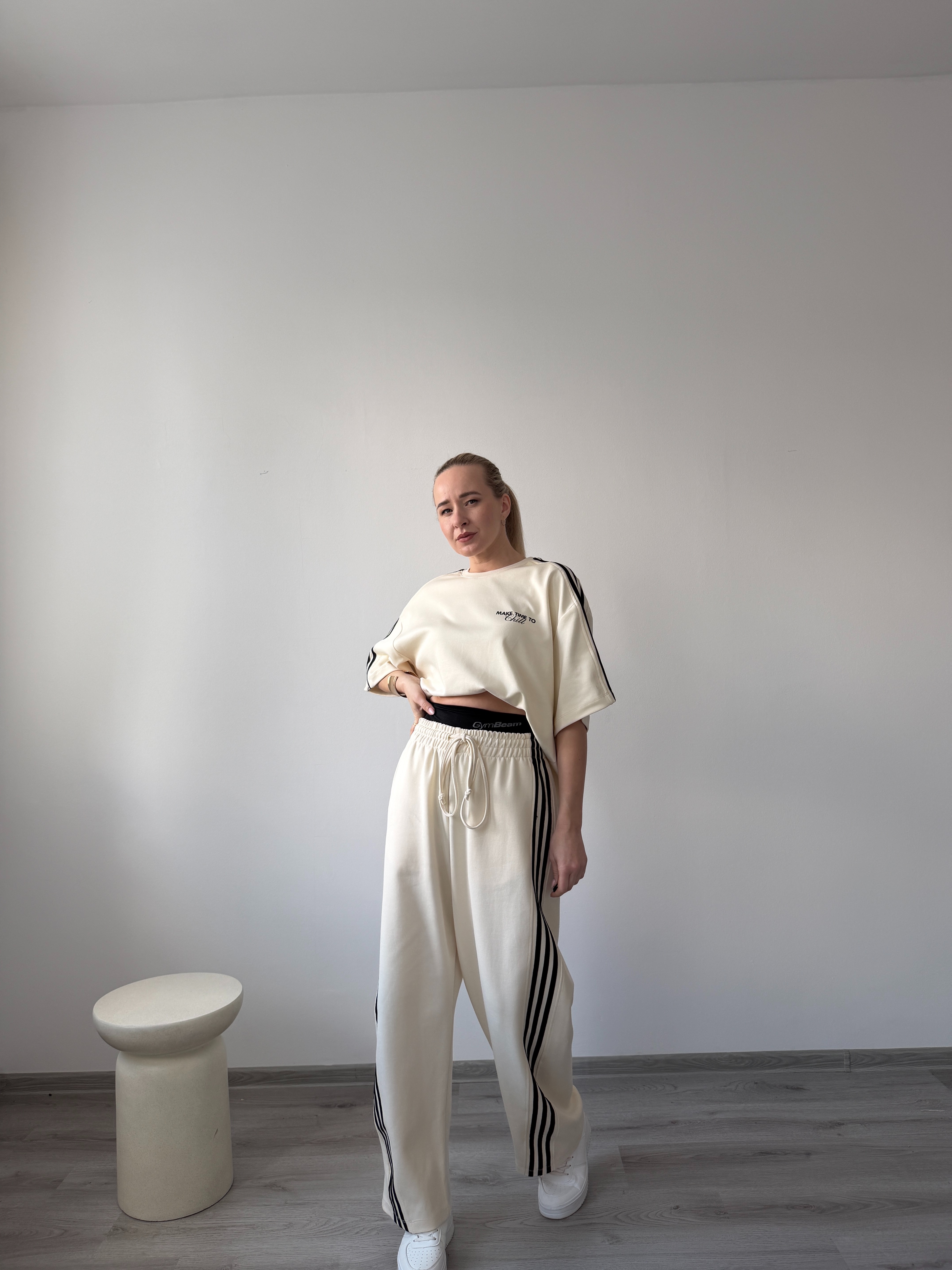 Minimalistický a pohodlný set v krémovej farbe. Voľná mikina a nohavice s elastickým pásom vytvárajú štýlový casual outfit na každý deň. Modelka má výšku 170cm, na sebe má veľkosť s/m. Nad 170cm odporúčame veľkosť m/l.
